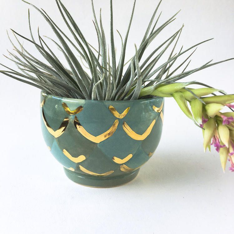 Ngay đến cả chiếc chậu cây nhỏ xinh cũng được thiết kế trên những cái vảy tinh tế.