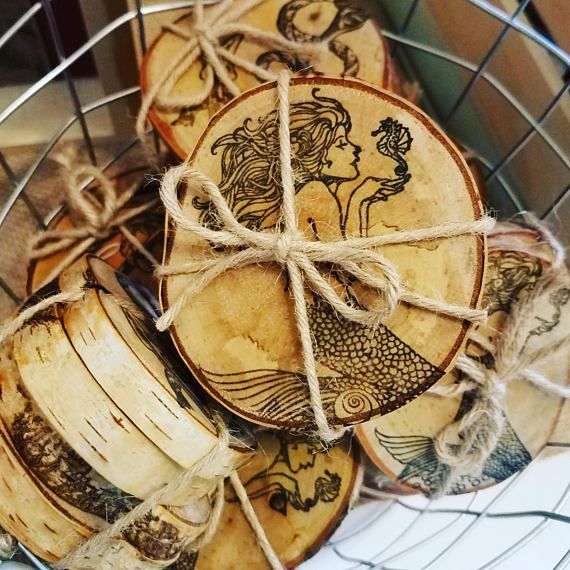 Các miếng lót cốc, bát đặc biệt với hình ảnh nàng tiên cá vừa cổ điển và sang trọng.