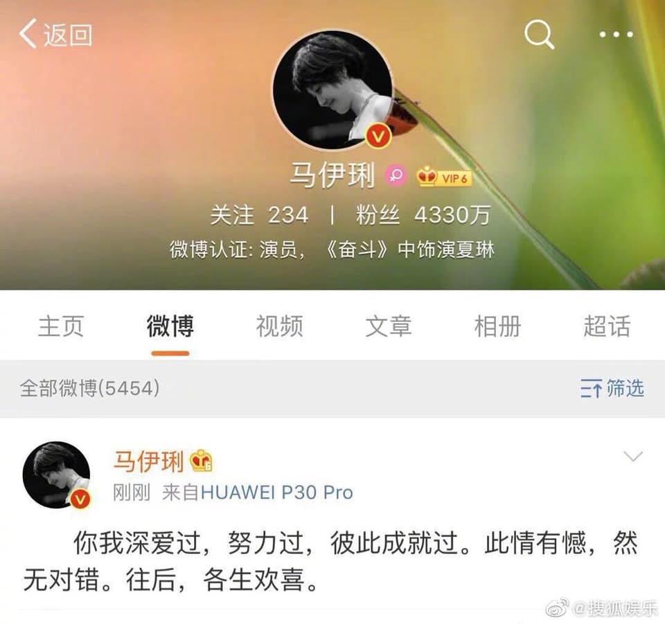 Và cũng không cần quá lâu để xác nhận thông tin khi ngay sau đó 2 nhân vật chính cũng đã tự lên trang xã hội cá nhân của mình để thông báo tin tức ly hôn tới người hâm mộ. Cụ thể Mã Y Lợi viết rằng: