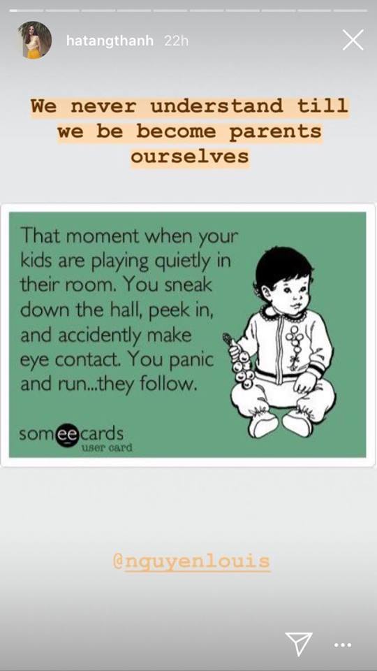 Mới đây, trên trang cá nhân, Hà Tăng đăng một loạt ảnh vui 'kể lể' về những vấn đề xoay quanh việc làm mẹ với sự đồng cảm. Cũng giống như nhiều bà mẹ khác, nữ diễn viên hai con hằng ngày vẫn phải trải qua nhiều chuyện vui, buồn, hài hước, bất ngờ… từ chính những đứa con của cô.