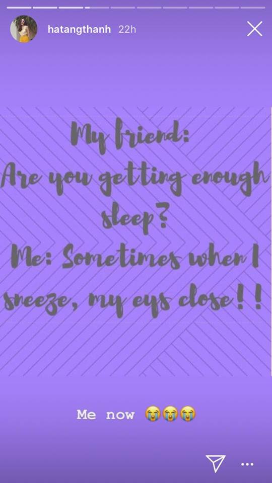 Người đẹp chia sẻ về vấn đề hiện tại, đó là thiếu ngủ, cô chỉ 'chợp mắt' mỗi khi vô tình hắt xì.