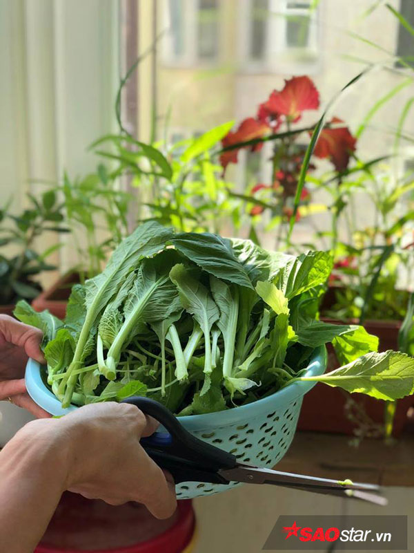 Chị Tuyết rất thích ban công của mình, vừa có rau ăn vừa được ngắm hoa và cho gia đình chị những phút giây thư giãn khi thức dạy hay lúc hoàng hôn.