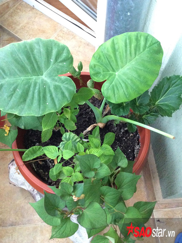 Anh chị đều có công việc bận rộn nhưng vẫn dành thời gian chăm sóc cho khu vườn nhỏ ở ban công của mình. Vì diện tích nhỏ, chị trồng rau và hoa trong các chậu đất.