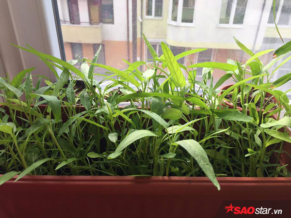Trong khu vườn nhỏ của chị Tuyết có khá nhiều loài rau Việt Nam như lô hội, húng, rau muống, rau cải, sả… Tất cả đều dùng để phục vụ bữa ăn hương vị Việt cho gia đình.