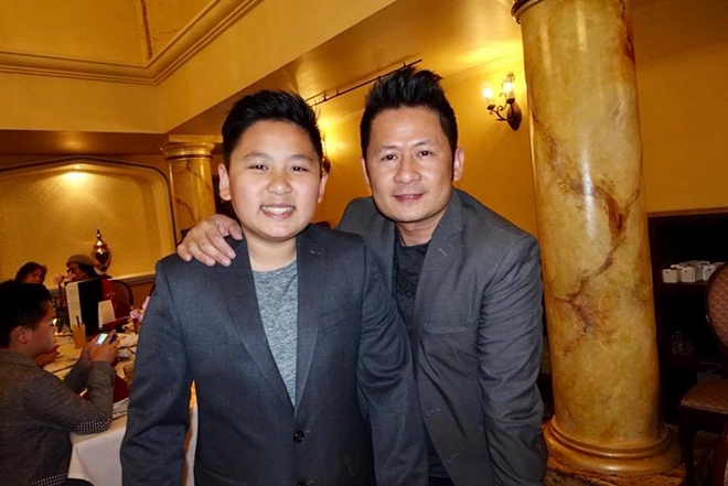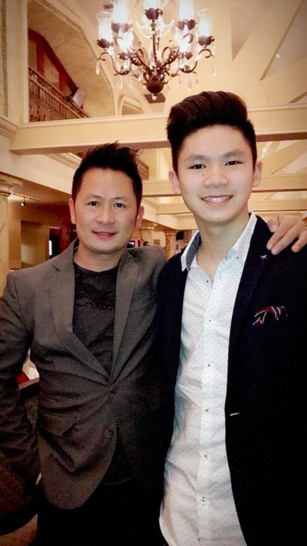 Hai bố con rất thân thiết với nhau, đặc biệt là cùng chung đam mê với âm nhạc. (Nguồn: FB Bằng Kiều)