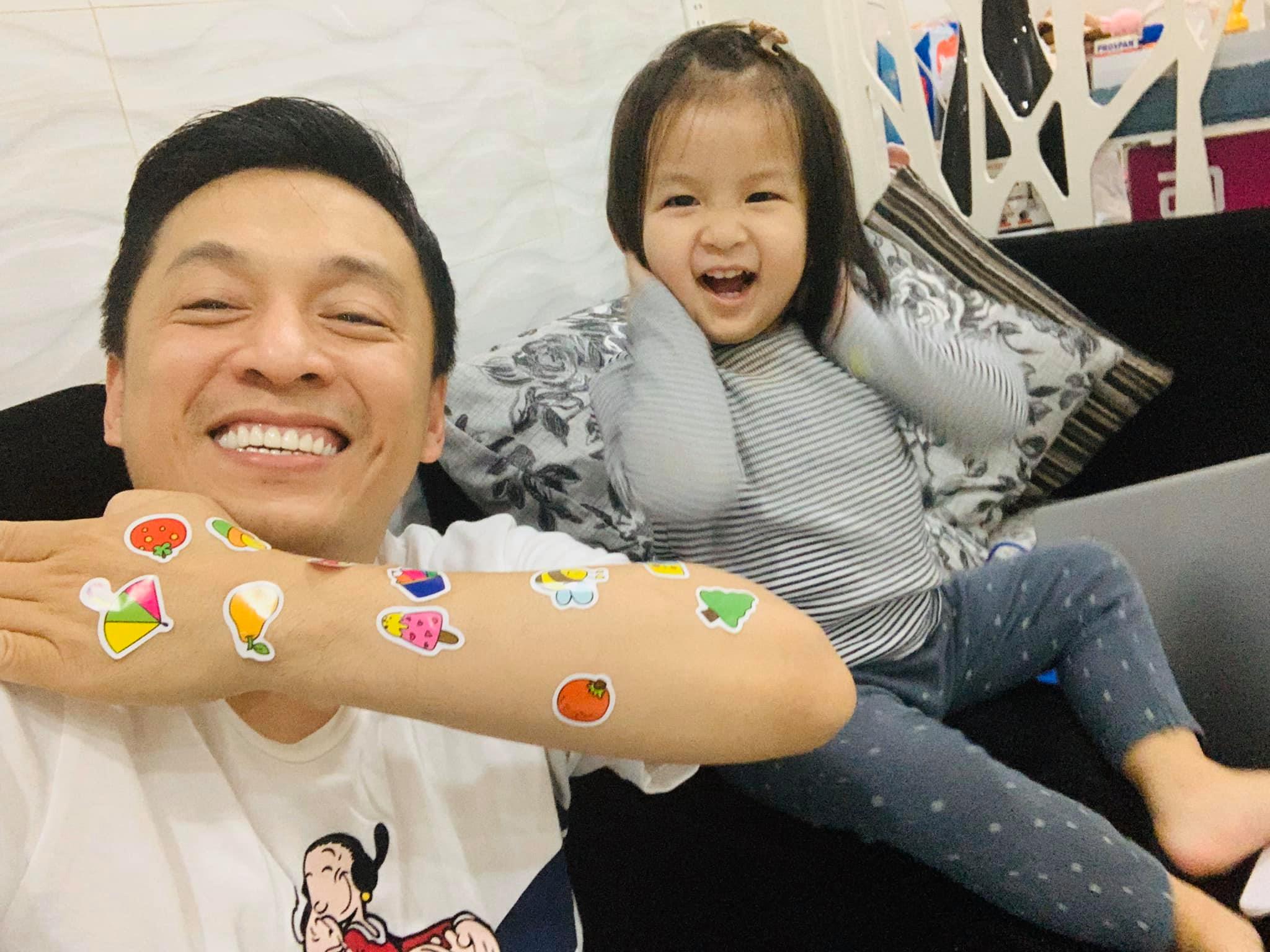 Thậm chí là chẳng ngại dán stickers đầy mặt để chiều lòng con gái ba tuổi như thế này