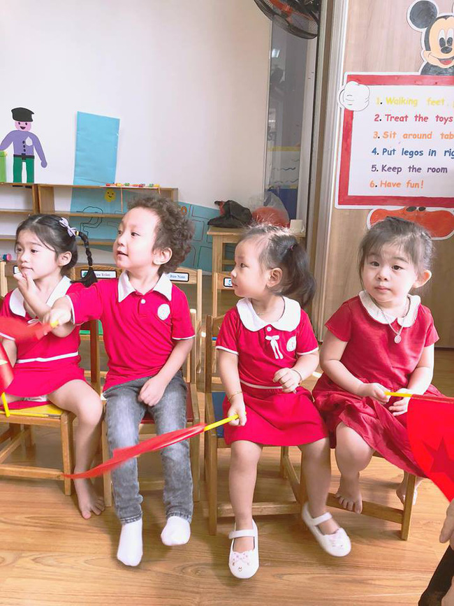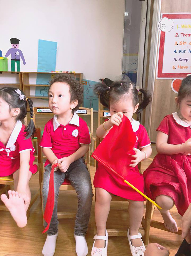 Diệp Bảo Ngọc và Ly Kute cũng khoe ảnh đưa con đến trường trong sáng nay. Cậu bé Khoai Tây nhà Ly Kute mới 2 tuổi hơn nhưng đã ra dáng người lớn hết sức. Trong khi đó, bé con nhà Diệp Bảo Ngọc lại hớn hở tạo dáng giơ tay chữ V cho mẹ chụp ảnh.