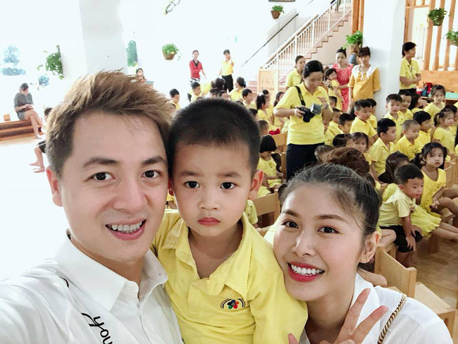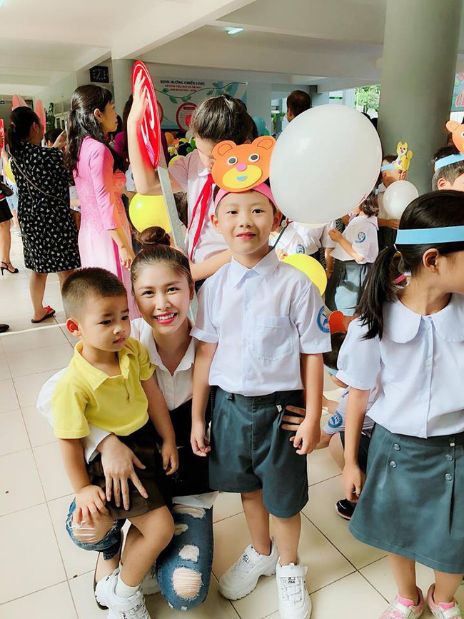 Thu Hương - vợ bà xã Tuấn Hưng vui vẻ chia sẻ trên trang cá nhân hình ảnh của hai con Su Hào và Son thích thú đi khai giảng. Khác với nhiều em bé khác, Son và Su Hào khá vui vẻ trong ngày tụ trường, không mè nheo hay khóc nhè, hai anh tươi cười cùng bạn bè mới.