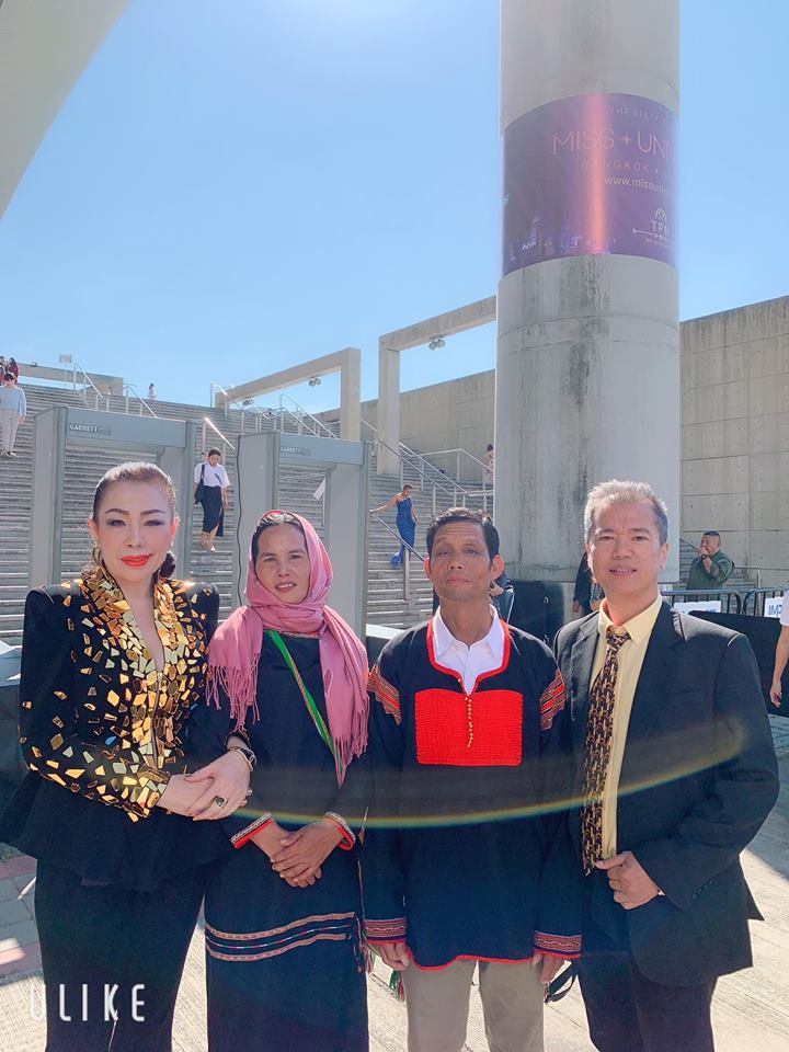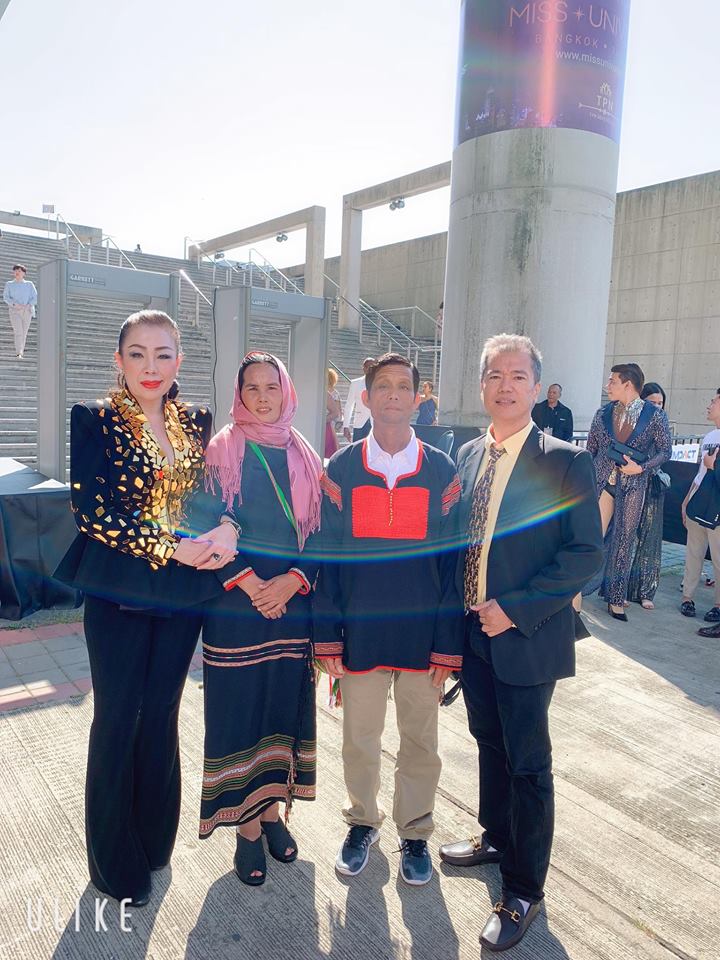 Bố mẹ H'Hen Niê sang Thái Lan cùng nhà thiết kế Linh San (trái).