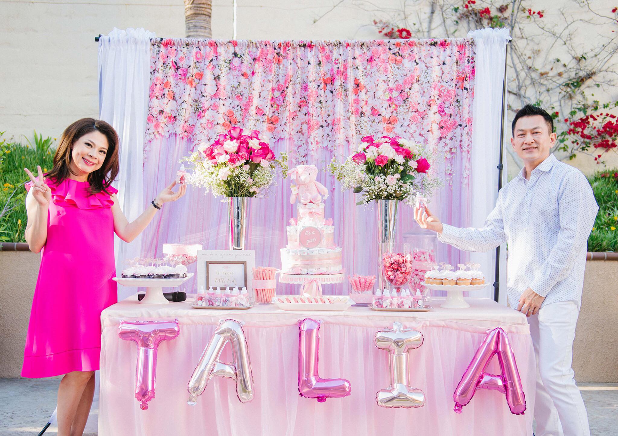 Cặp đôi hạnh phúc trong tiệc “Baby shower” của con gái.