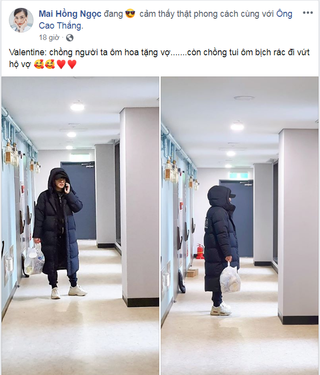 Đông Nhi cũng khiến nhiều người không khỏi thích thú khi đăng ảnh ông xã Ông Cao Thắng ôm bịch rác đi vứt thay vì ôm hoa tặng vợ