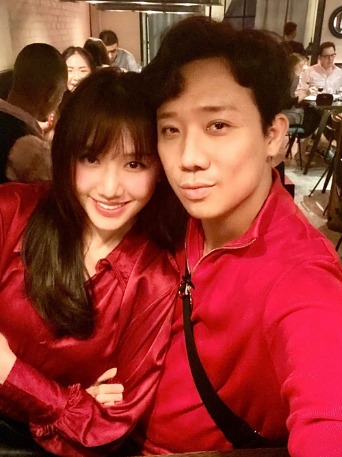 Vợ chồng Trấn Thành - Hari Won khoe ảnh mặc đồ đôi màu đỏ ton-sur-ton trong ngày Valentine.