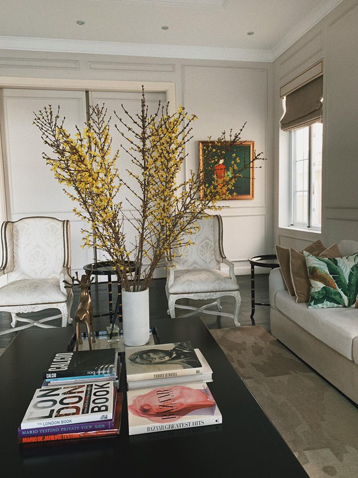 Ngọc nữ làng điện ảnh Việt hé lộ không gian đầy sang trọng. Mặc dù ở TP.HCM nhưng Tăng Thanh Hà cũng tự tay mua cho mình 1 cành đào phai mang không khí miền Bắc.