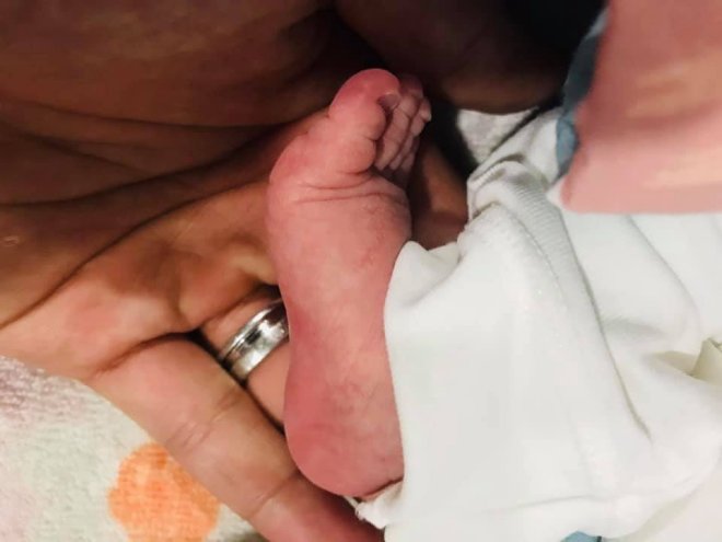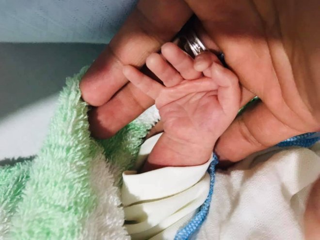 Thay vì công khai hình ảnh gương mặt con trai thì cặp đôi lại chọn cách giấu kín và chỉ khoe khéo bàn tay và bàn chân của 2 bé
