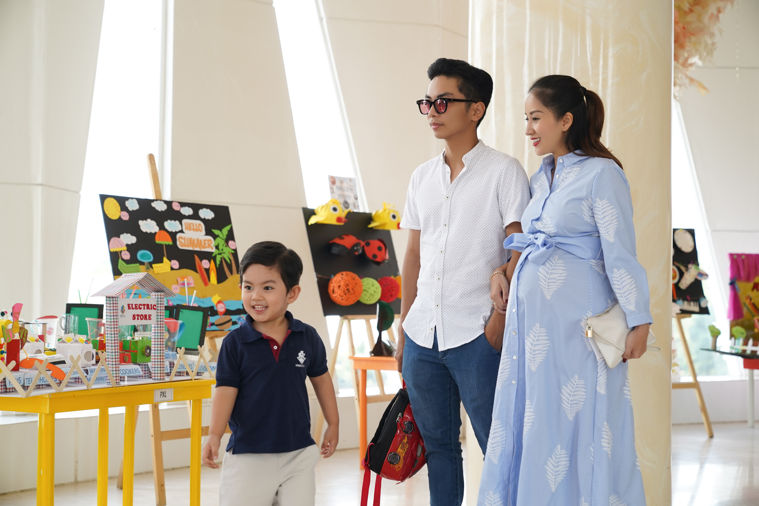 Hôm nay (27/5) là lễ bế giảng của quý tử nhà Phan Hiển - Khánh Thi nên dù công việc bận rộn cả hai đều tranh thủ thời gian đưa con trai đến trường. Đang ở những tháng cuối của thai kỳ nhưng nữ kiện tướng dance sport vẫn rất xinh đẹp và rạng rỡ khiến nhiều người không khỏi ngưỡng mộ.