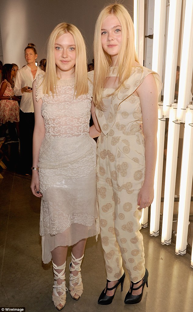 Váy xếp pli kiêu kỳ của Dakota Fanning nhận điểm 10 tuyệt đối khi được phối đồng điệu với khuyên tai. Vẻ đẹp thoát tục của cô và em gái cũng lọt mắt xanh của các nhà mốt. Dù không có chiều cao nổi bật nhưng cả 2 không ít lần nhận lời mời làm mẫu.