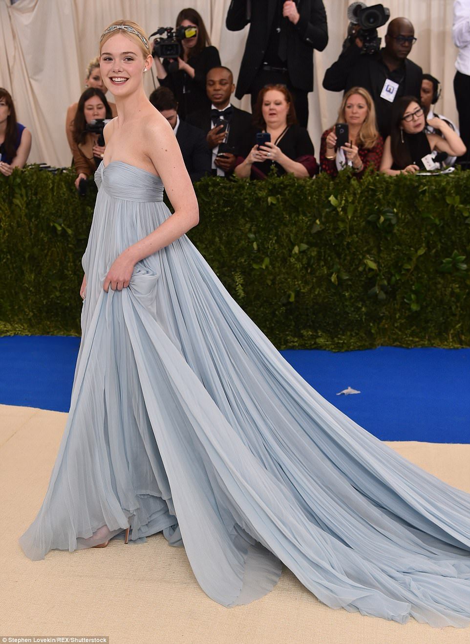 Cũng giống như em gái, Dakota Fanning cũng thích diện những mẫu váy dài chấm gót khi xuất hiện trên thảm đỏ.