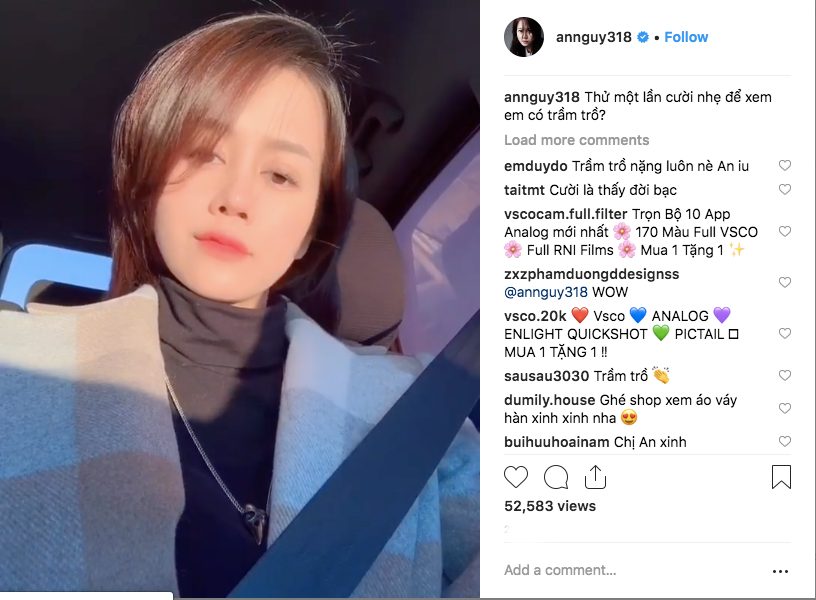 Người hâm mộ lại chú ý tới An Nguy khi cô xoá toàn bộ ảnh trên Instagram. Không những thế, An Nguy còn chia sẻ dòng trạng thái “Thử một lần cười nhẹ để xem em có trầm trồ”. Đoạn clip vài giây nhưng ghi lại hình ảnh An Nguy nở nụ cười “nhẹ” hơi nhếch mép, mỉa mai.