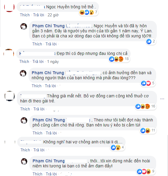 Bên cạnh những lời chúc thì cũng có một số anti-fan vào chỉ trích nghệ sĩ Chí Trung vì ly hôn vợ
