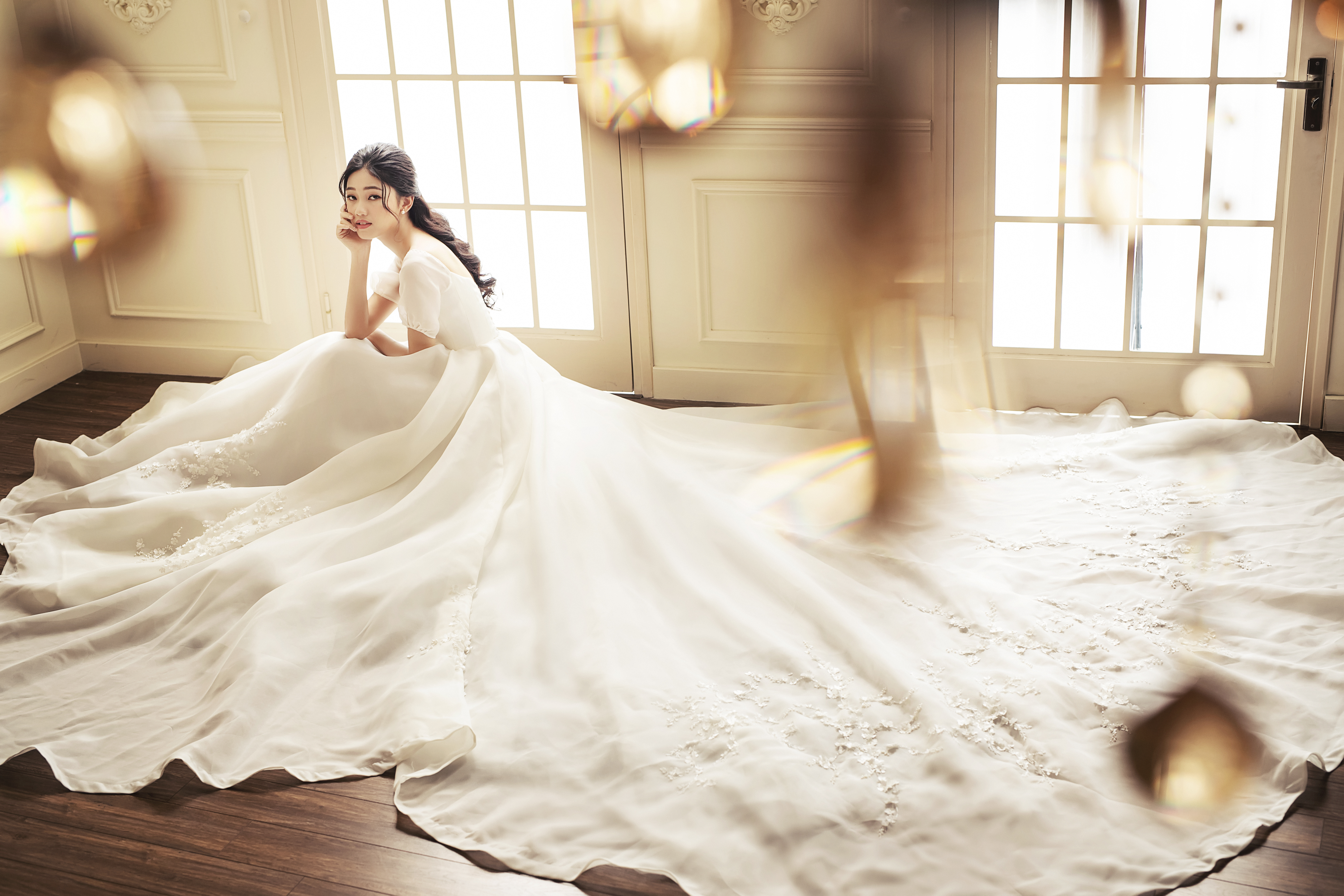 Diện những mẫu đầm cưới đúng chuẩn châu Âu, thanh lịch, đơn giản nhưng lại vô cùng quý phái, màu ảnh tông nâu trầm cùng những khuôn hình không quá rạng rỡ, nhưng vẫn toát lên sự hạnh phúc trong ánh mắt Thanh Tú.