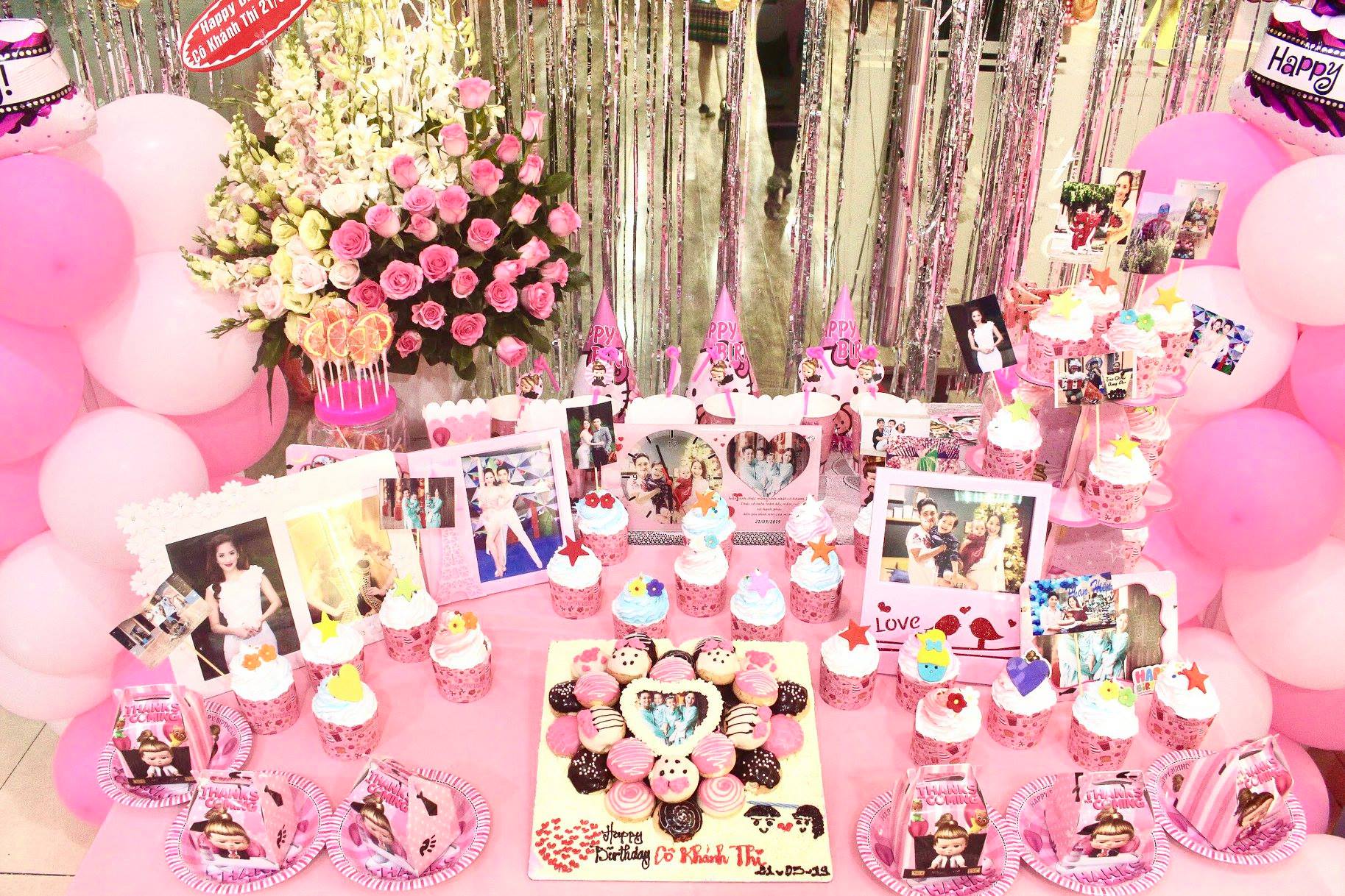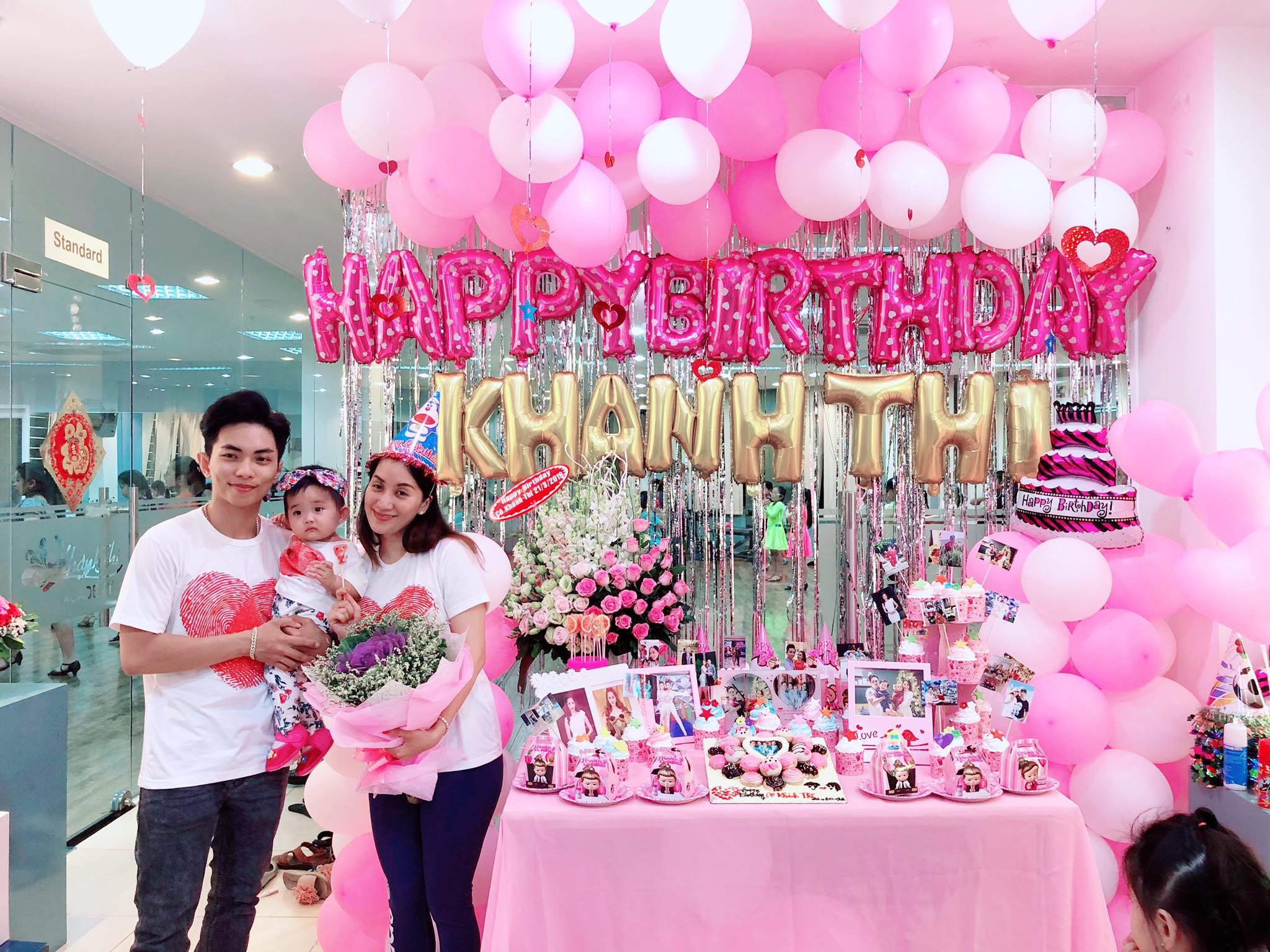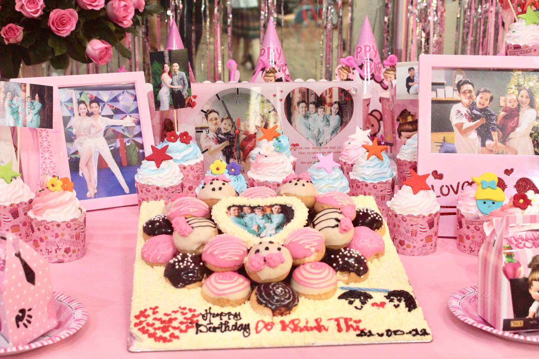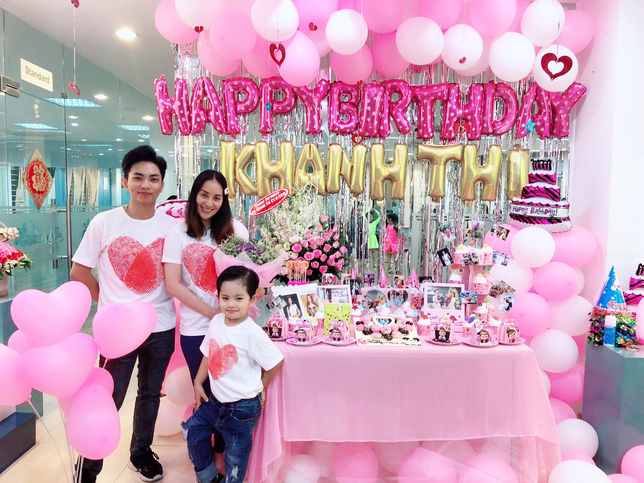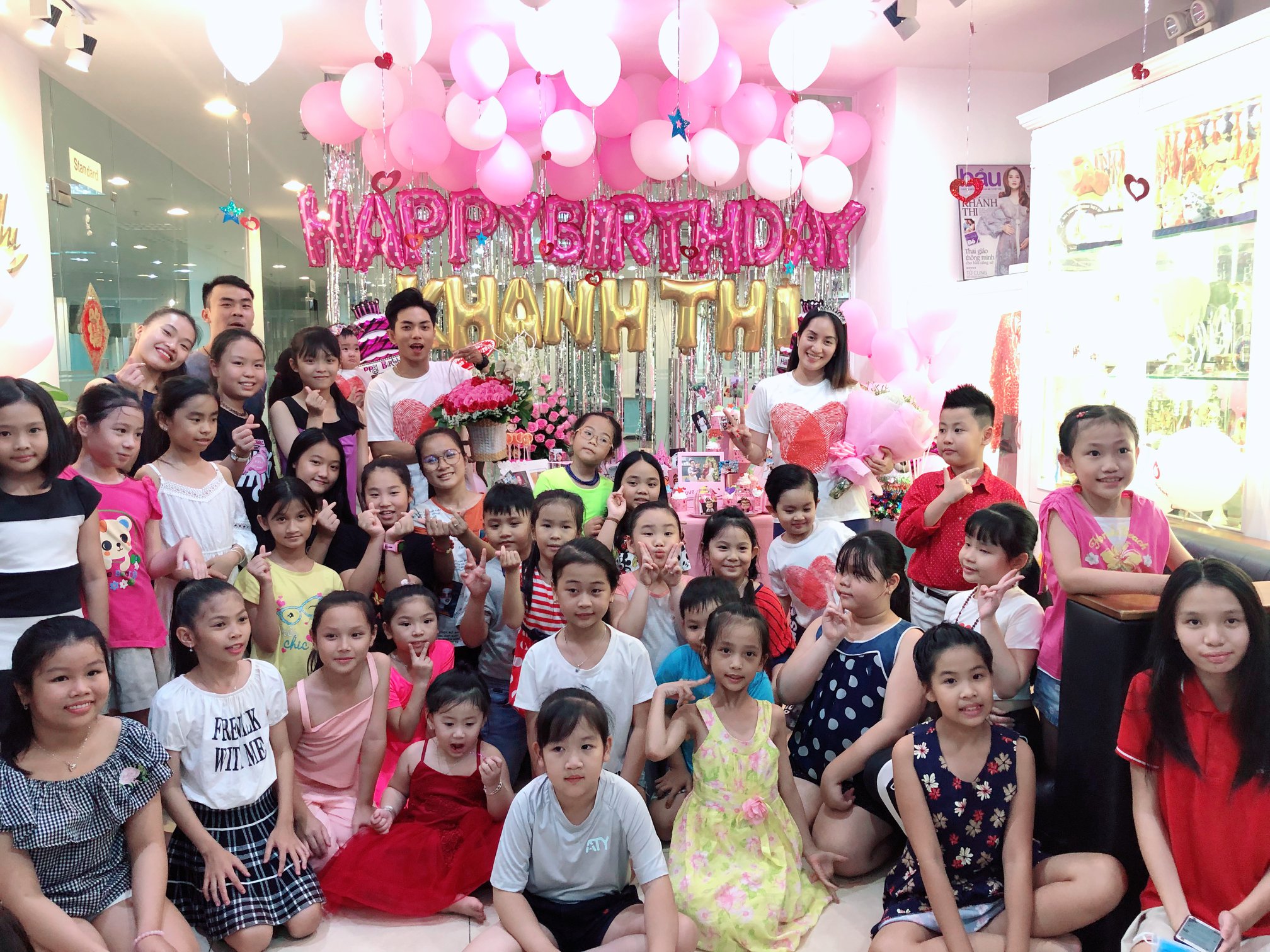 Bữa tiệc được trang trí toàn màu hồng khiến nhiều người tỏ ra bất ngờ. Có vẻ bà mẹ 2 con Khánh Thi rất yêu thích màu hồng. Bữa tiệc còn có sự xuất hiện của rất nhiều học trò nhí của Khánh Thi.