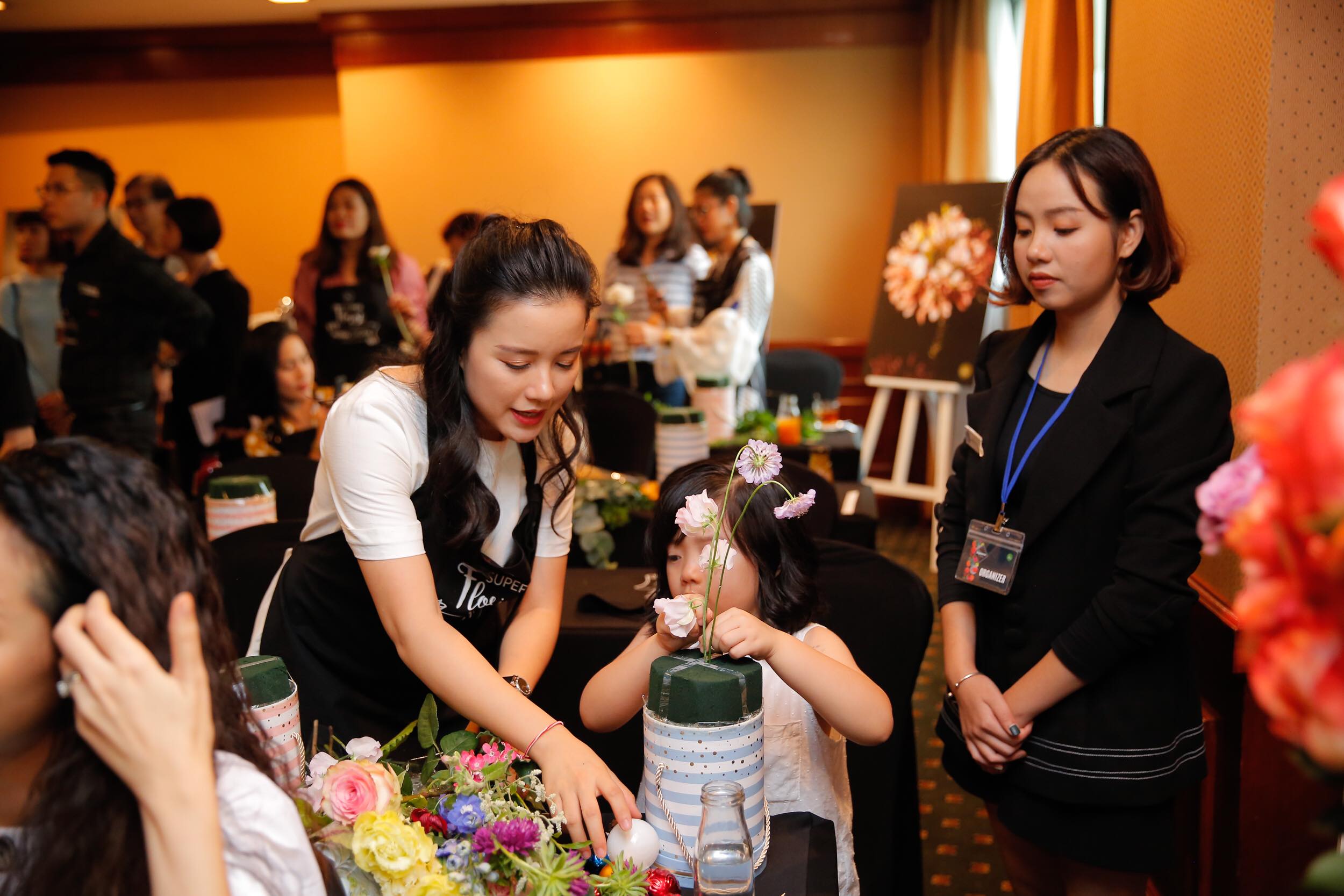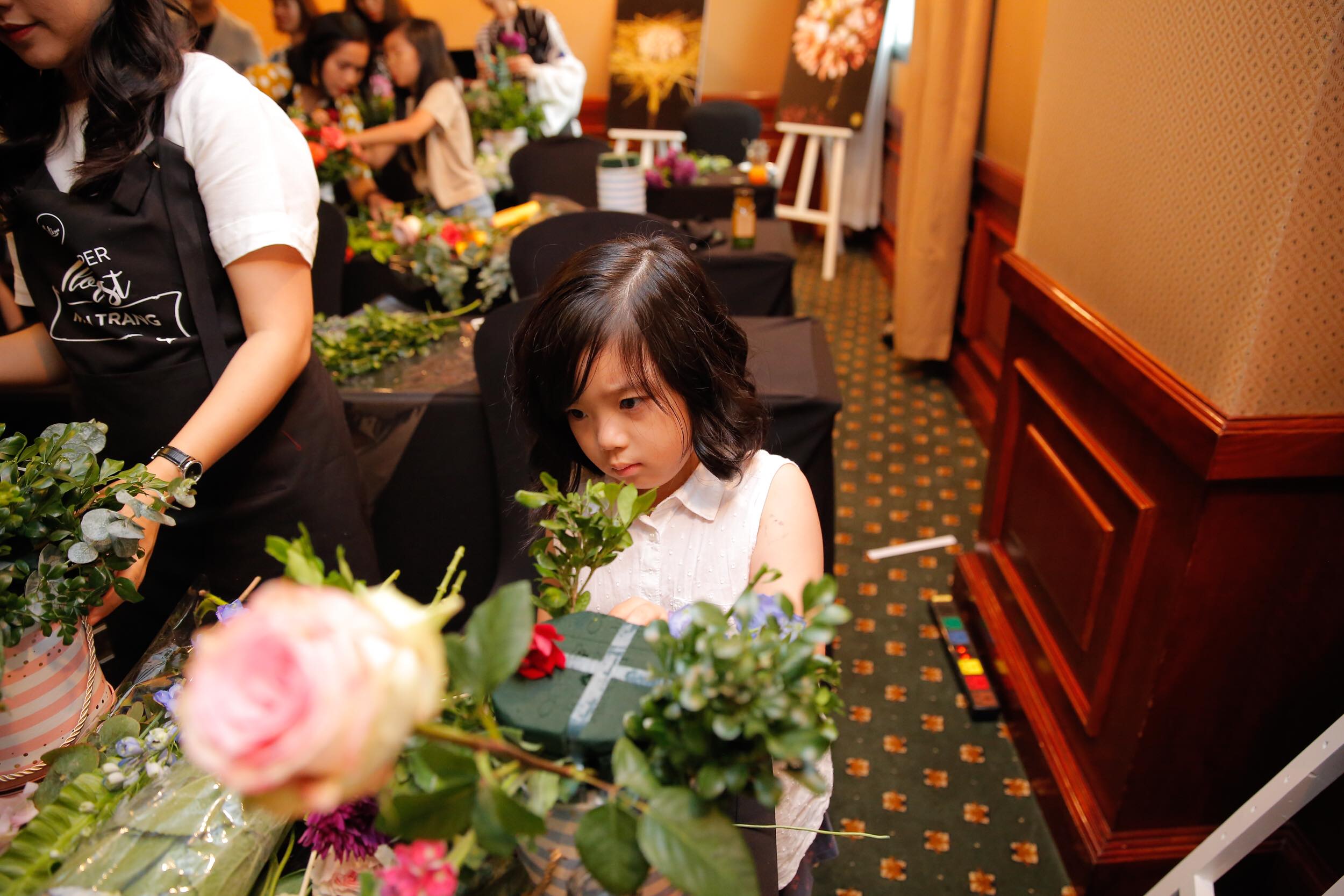 Có lẽ đáng yêu hơn cả là bé gái Daisy con của MC Minh Trang. Cô bé mặc tone - sur - tone màu trắng theo mẹ đi cắm hoa. Trong khi mẹ và các cô chú diễn viên MC khác chỉ cắm bình hoa nhỏ thì Daisy hí hoáy học và cắm bằng được 2 lẵng hoa ngộ nghĩnh. Bé nói cắm hoa để mang về tặng 2 em gái Bánh Mì và Bơ ở nhà.