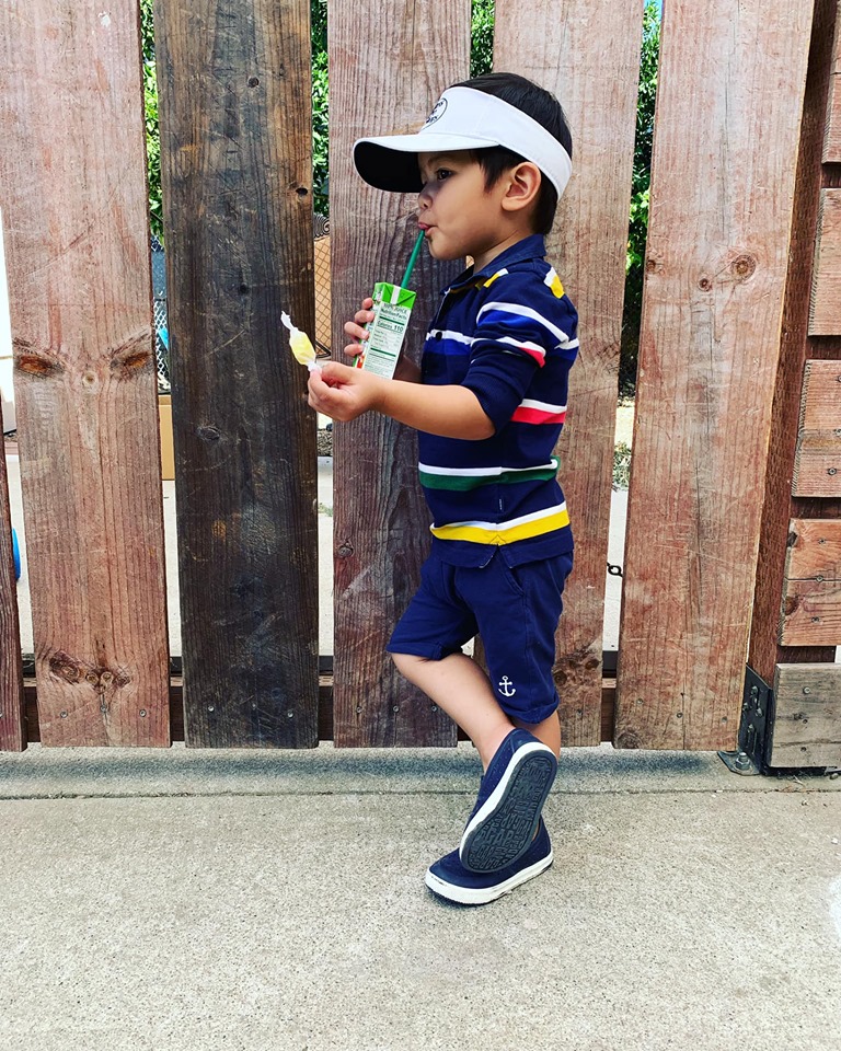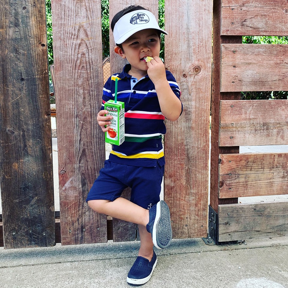 Có thể thấy chỉ mới 2 tuổi hơn nhưng quý tử nhà Đan Trường đã rất hào hứng và nghiêm túc với công việc của mình. Không chỉ dừng lại ở việc tập thể dục mà trước đó cậu bé còn được mẹ hướng dẫn và tập luyện cách tạo dáng để chụp ảnh quảng cáo.