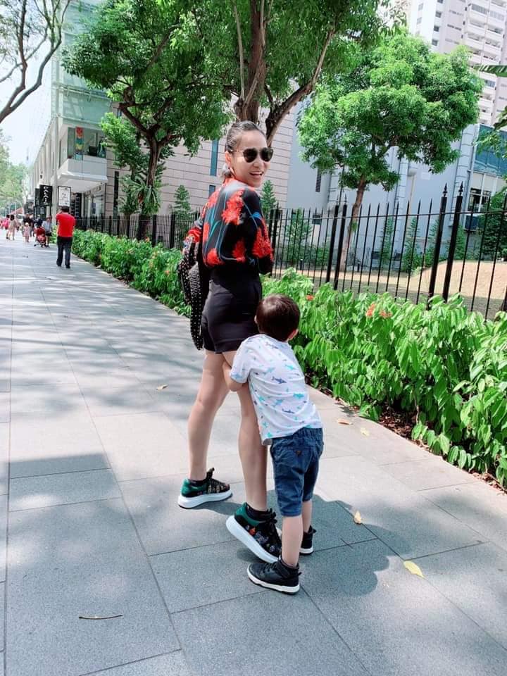 Trước đó, ca sĩ Thu Minh chia sẻ khoảnh khắc xuống phố cùng con trai: “Cả nhà tung tăng, anh lười đi bộ và bất chấp ngoài đường xá ôm chân mẹ lê lết đòi cõng. Thật là bó tay với anh. Xin lỗi vì mẹ bêu xấu con trai cưng nhé“.