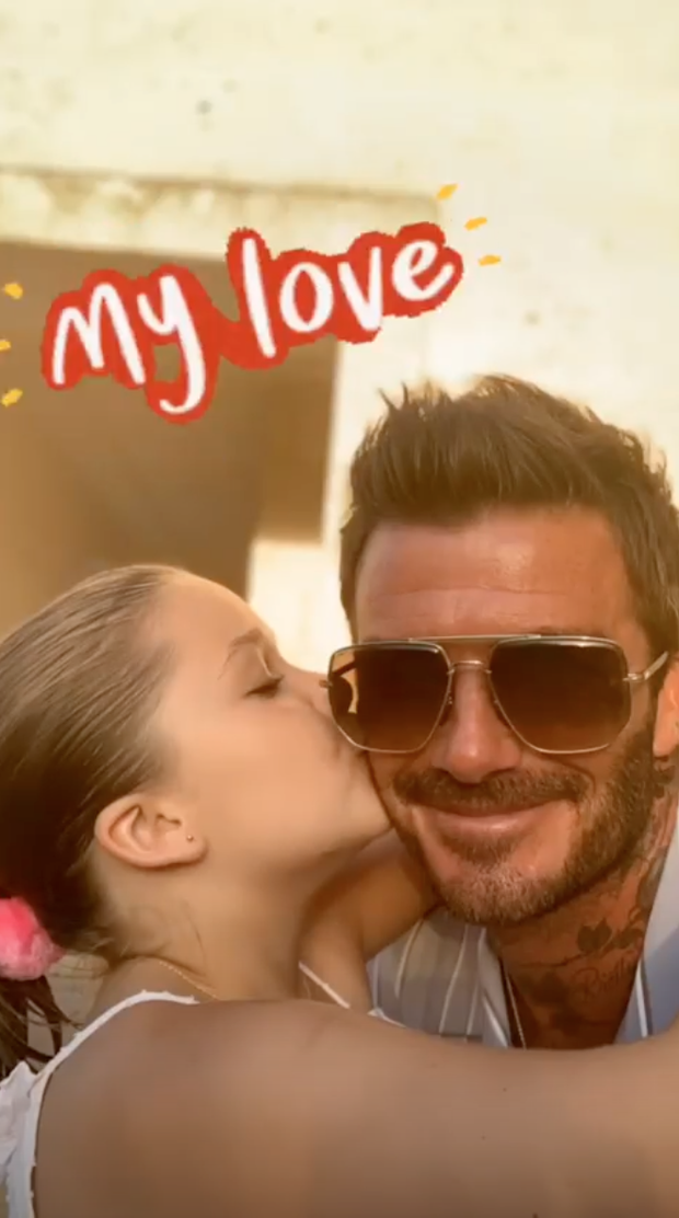 Trên trang cá nhân của mình, cựu thành viên Spice Girl - Victoria đã dành hẳn một bài riêng để đăng ảnh hai bố con với nhau cùng dòng chú thích: “Hôn các tình yêu của tôi”.