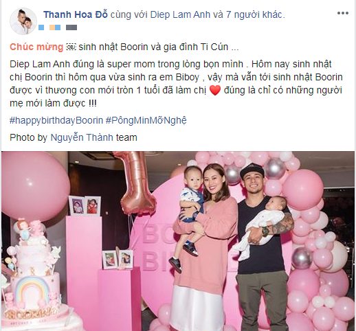 Mới đây trên trang cá nhân của Diệp Lâm Anh đã thu hút sự chú ý của nhiều người khi loạt ảnh trong bữa tiệc sinh nhật 1 tuổi của bé Boorin - con gái Diệp Lâm Anh được chính nữ diễn viên cũng như những bạn bè người thân của cô chia sẻ rầm rộ trên mạng xã hội kèm những lời chúc mừng.