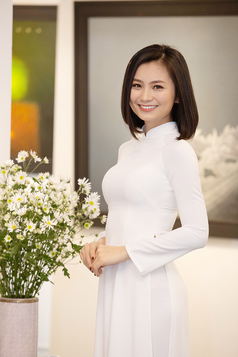 Người đẹp làng điện ảnh Huyền Trang diện váy trắng tinh khôi