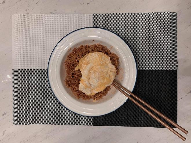 Nữ ca sĩ chia sẻ “Đi làm việc về khuya tôi quá mệt. Nhưng anh ấy nói: Em muốn ăn mì không? Anh nấu cho. Trước giờ chưa bao giờ anh ấy nấu gì cho tôi cả nên tôi gật đầu liền. Và cũng khá là ngon đấy. Đối với người ta chỉ là mì gói xào, nhưng tôi thích. Tình yêu tràn đầy”.