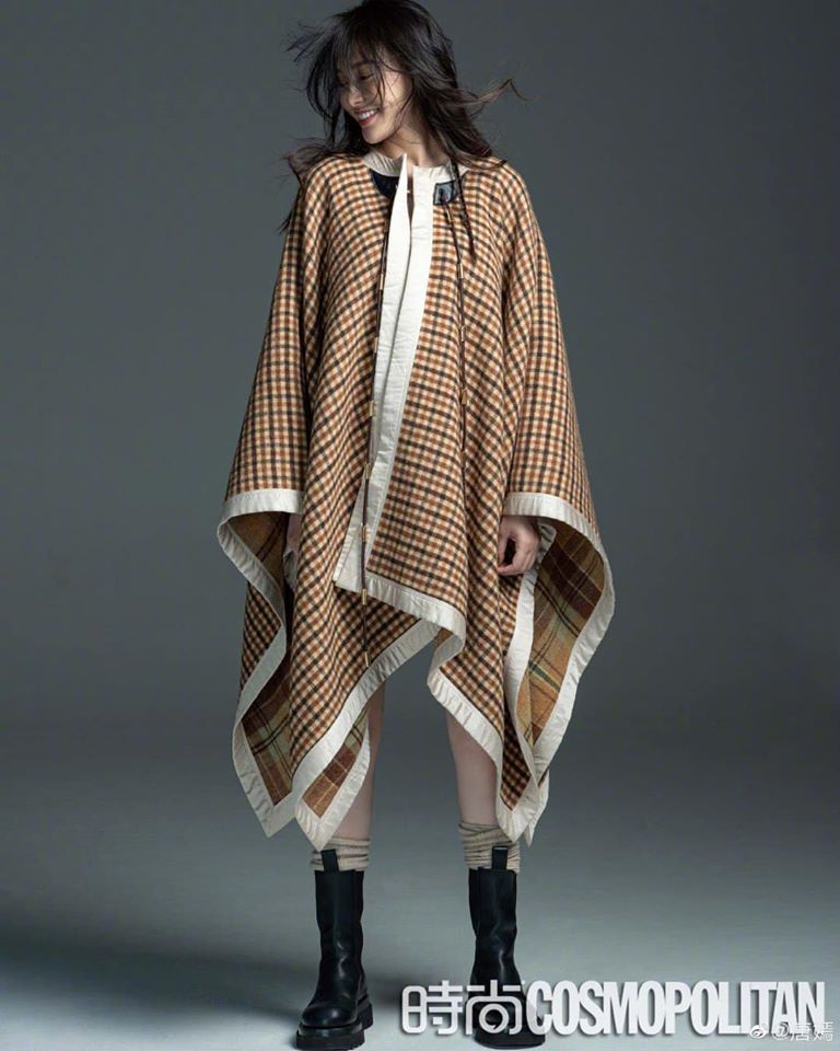 Thực hiện bộ ảnh thời trang mới, Đường Yên đều lựa chọn những bộ trang phục rộng để che phủ vòng 2