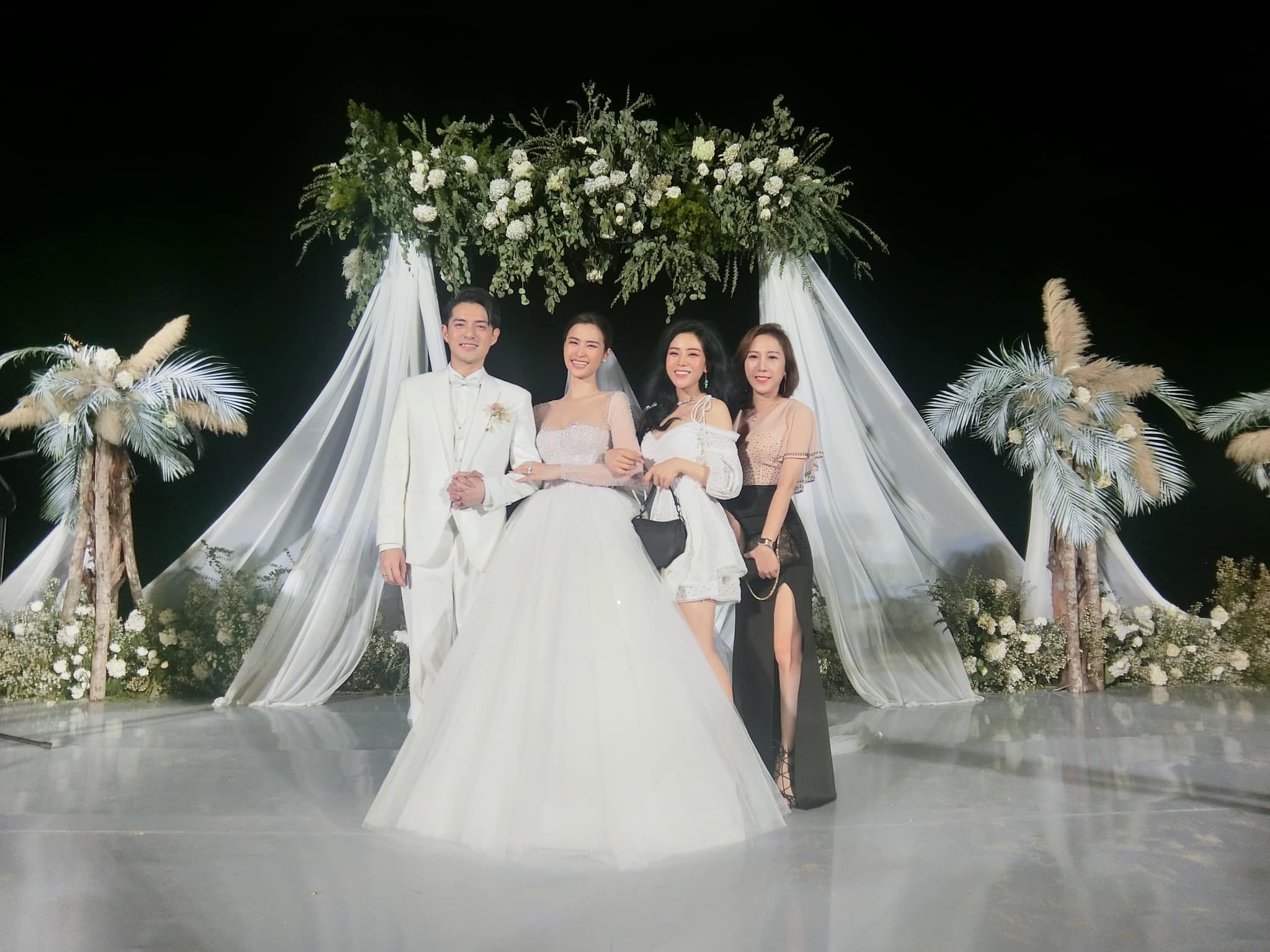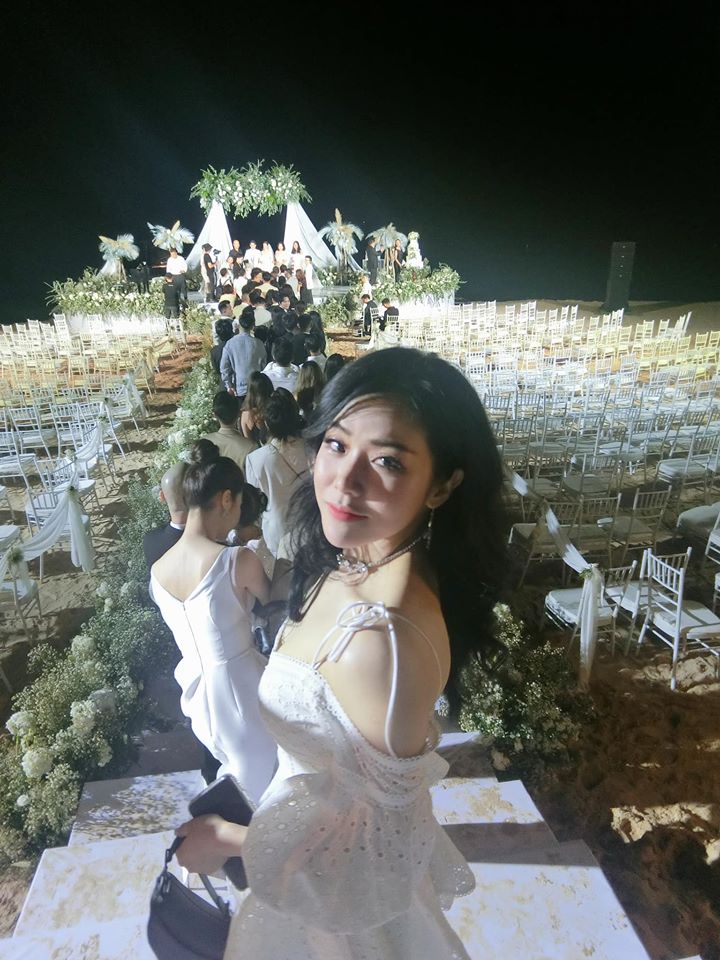 Tham dự đám cưới của anh chị, Ông Thoại Liên diện chiếc váy trắng thanh lịch. Cô nàng nhận được nhiều lời khen ngợi cho nhan sắc xinh đẹp cũng như thần thái sang chảnh đúng chất tiểu thư nhà giàu