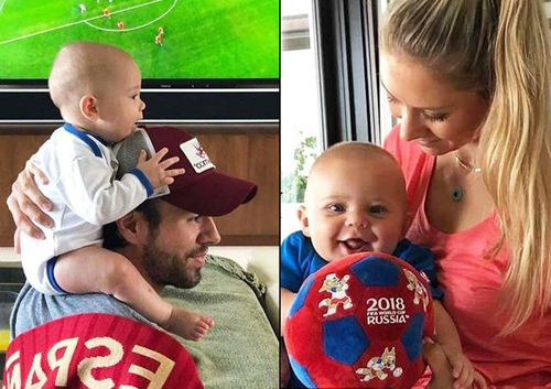 Cả hai đăng ảnh theo dõi World Cup cùng cặp song sinh lên Instagram của mình.