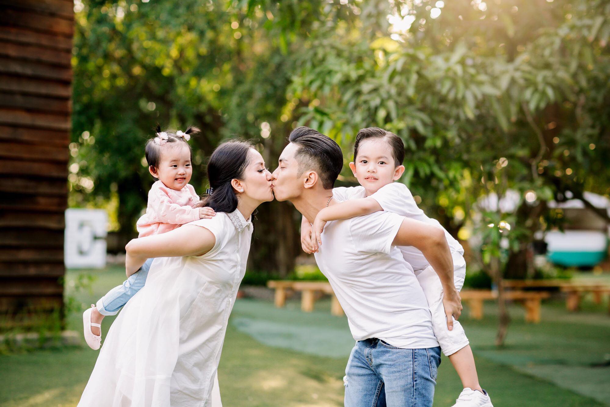 Cặp đôi chia sẻ “Cả nhà ta cùng thương nhau. Xa là nhớ gặp nhau là cười”. Hình ảnh vợ chồng bế 2 nhóc tì kháu khỉnh trên tay và chụp ảnh ngọt ngào bên nhau đã chứng minh hạnh phúc mà họ đang có trong tay.