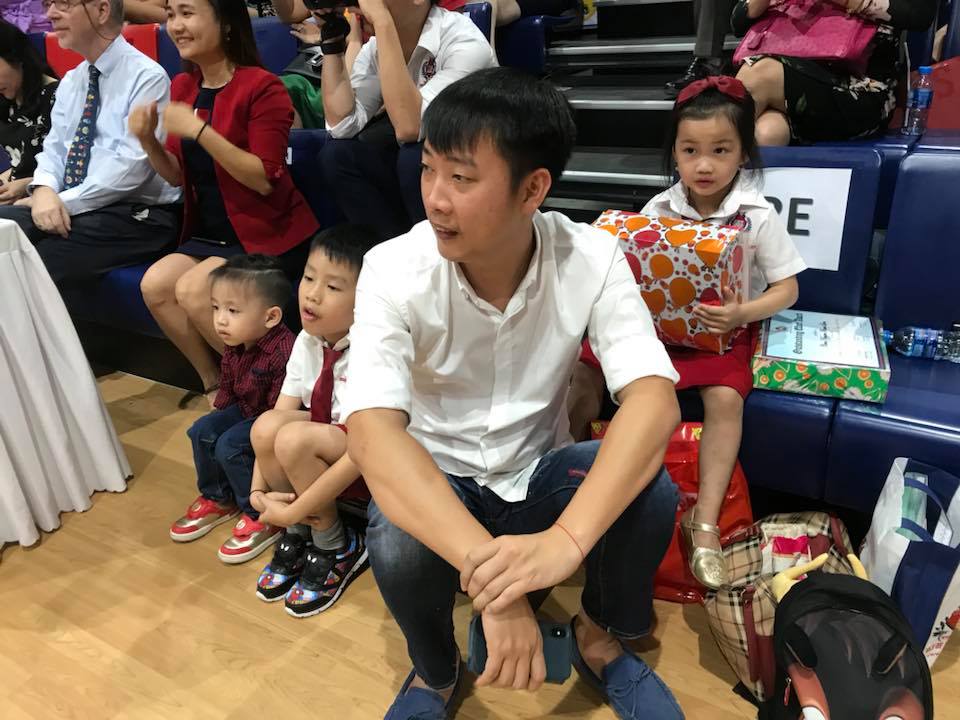 Ông xã Trí Rùa cũng có mặt để ủng hộ tinh thần các con.