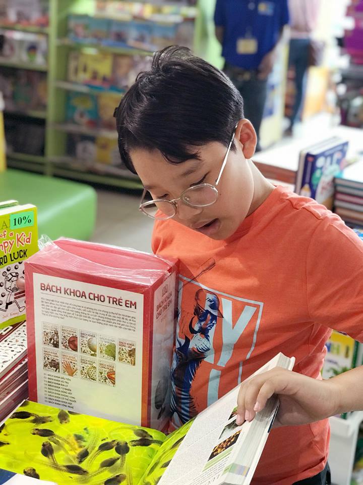 Hoàng Bách cùng vợ đưa 2 thiên thần nhỏ đi nhà sách nhân ngày Quốc tế thiếu nhi 1/6.