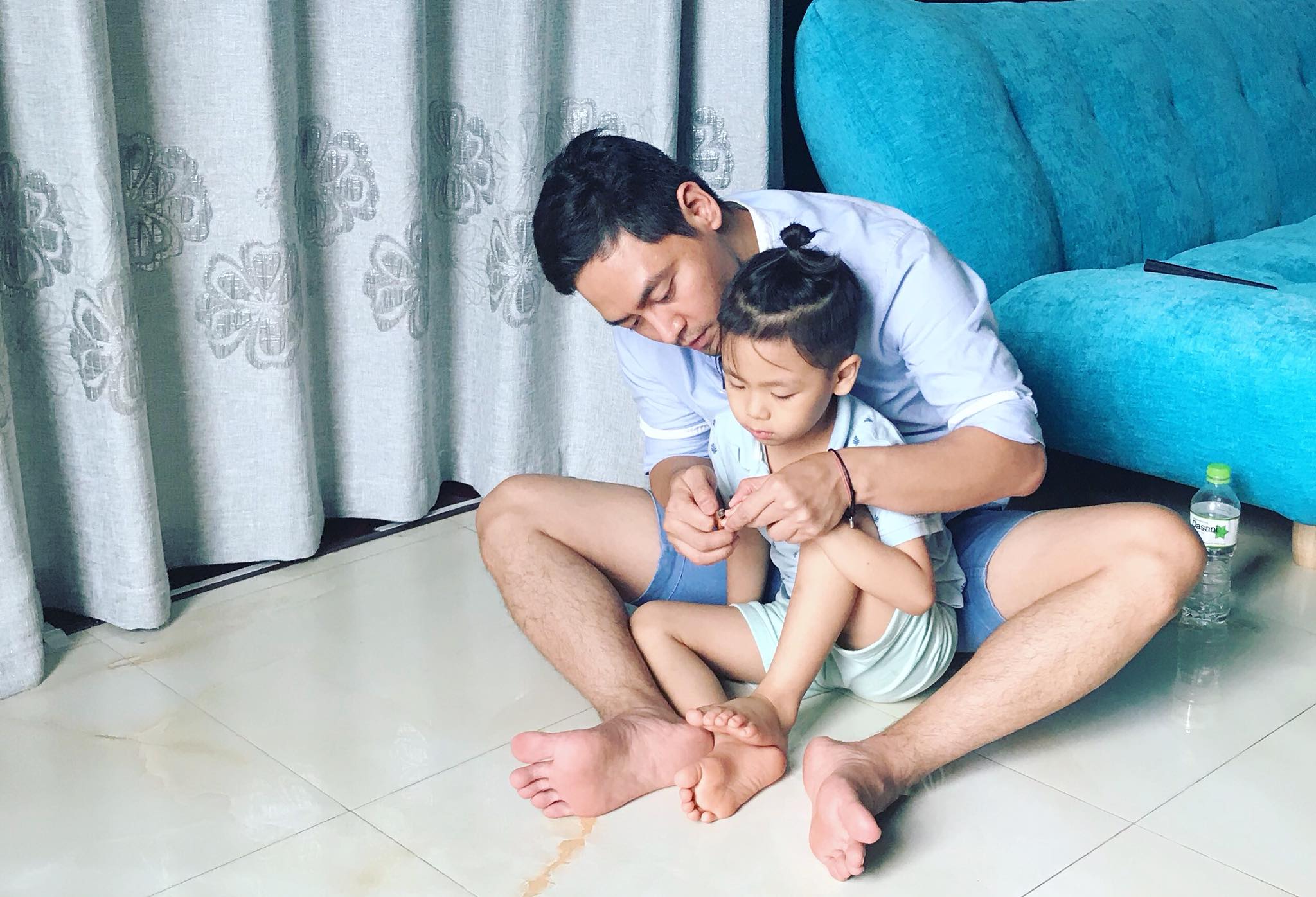 Ông bố Phan Anh thì dành thời gian ở nhà cho con. Anh hào hứng chia sẻ: “Việc chăm con đều đặn duy nhất mà mình làm ở nhà đó là cắt móng tay, chân cho cả 3 đứa“.