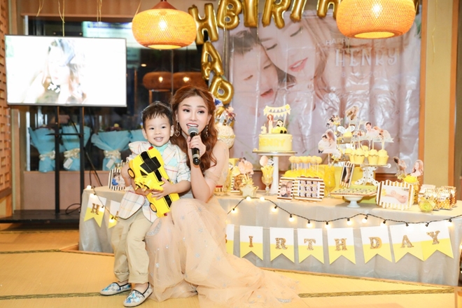 Cũng trong buổi tiệc Thu Thủy đã lần đầu giới thiệu với mọi người loạt ảnh của bé Henry từ ngày chào đời đến nay, lồng vào đó là những lời tâm tình từ đáy lòng cô thủ thỉ với con trai.