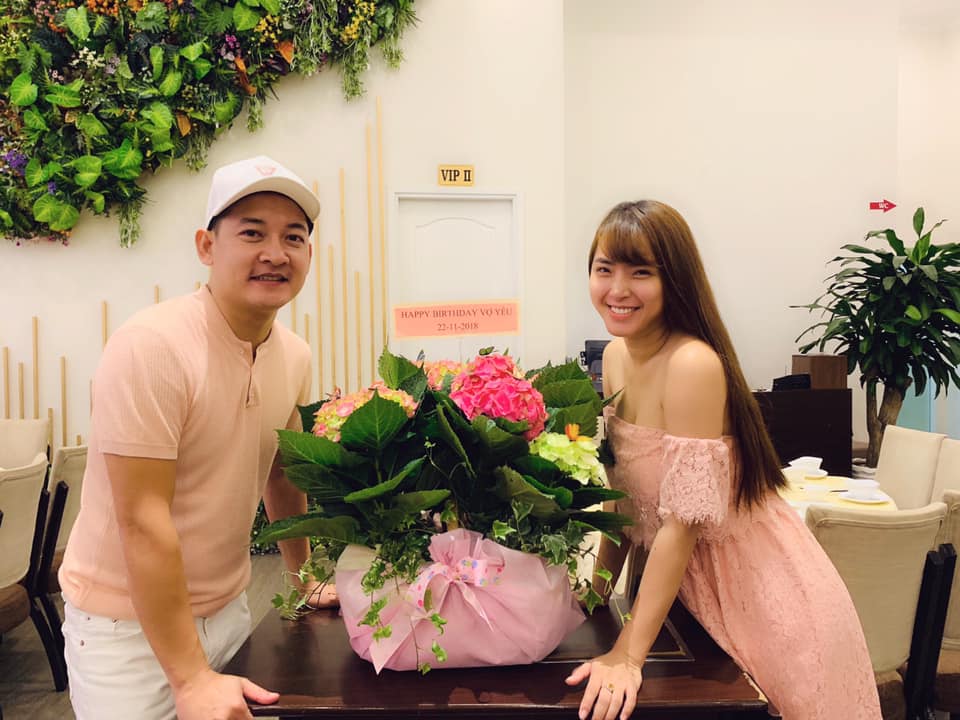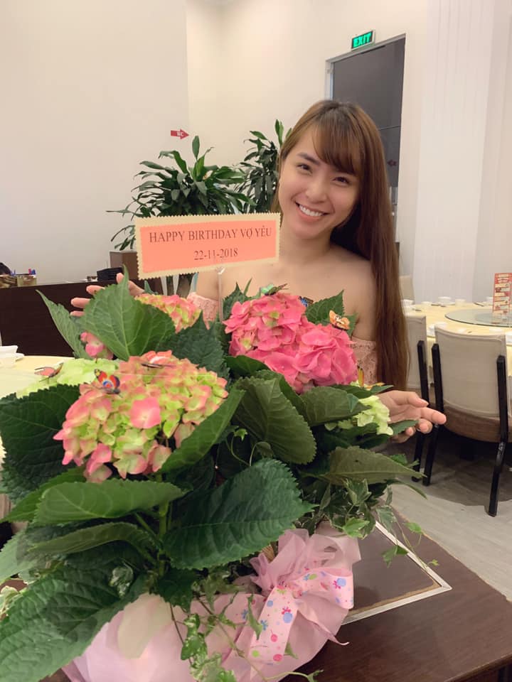 Tối ngày 22/11, Hải Băng đã đón một sinh nhật ấm áp bên cạnh gia đình. Bỏ qua những u ám của việc nguy hiểm khi đang mang thai, Hải Băng vô cùng hạnh phúc và mỉm cười bên cạnh ông xã.
