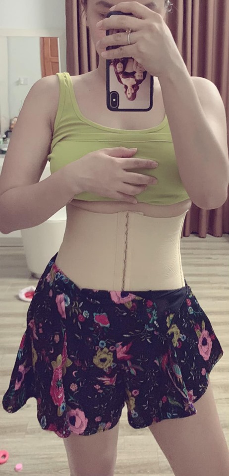 Có lẽ nếu chỉ nhìn qua bức ảnh ở trên sẽ không ai nghĩ Hải Băng đã là mẹ của 3 đứa con thậm chí là cô còn mới 'vượt cạn' cách đây chưa được 2 tháng. Được biết để có được vòng eo thon gọn như thế này, Hải Băng đã phải liên tục đeo đai nịch eo kết hợp với chế độ ăn uống hợp lý.