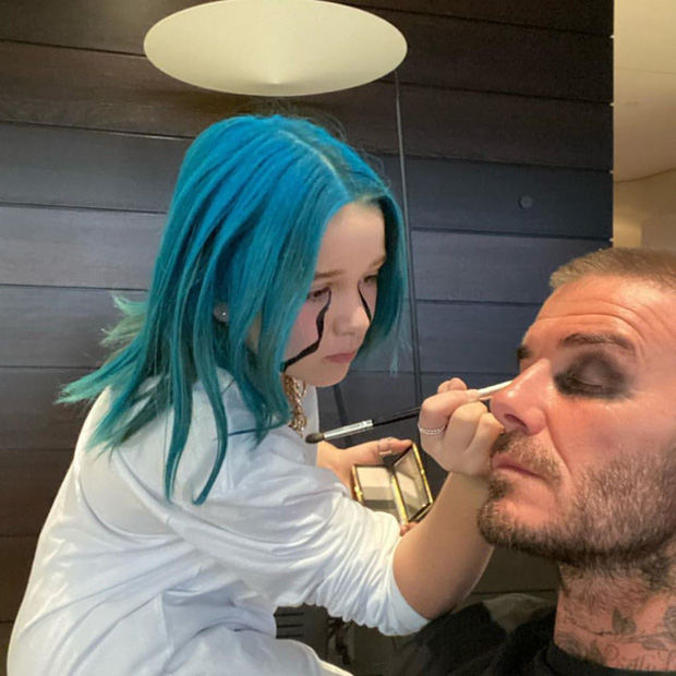 Không những thế Harper Beckham còn gây bất ngờ cho mọi người khi chùm ảnh hậu trường cô bé cùng mẹ Victoria tự tay trang điểm cho bố và anh trai được David Beckham chia sẻ trên mạng xã hội. Cựu tiền đạo nổi tiếng thế giới còn cho biết, Harper đã dùng hết mỹ phẩm của mẹ Victoria để tô vẽ cho bố và anh trai mình.
