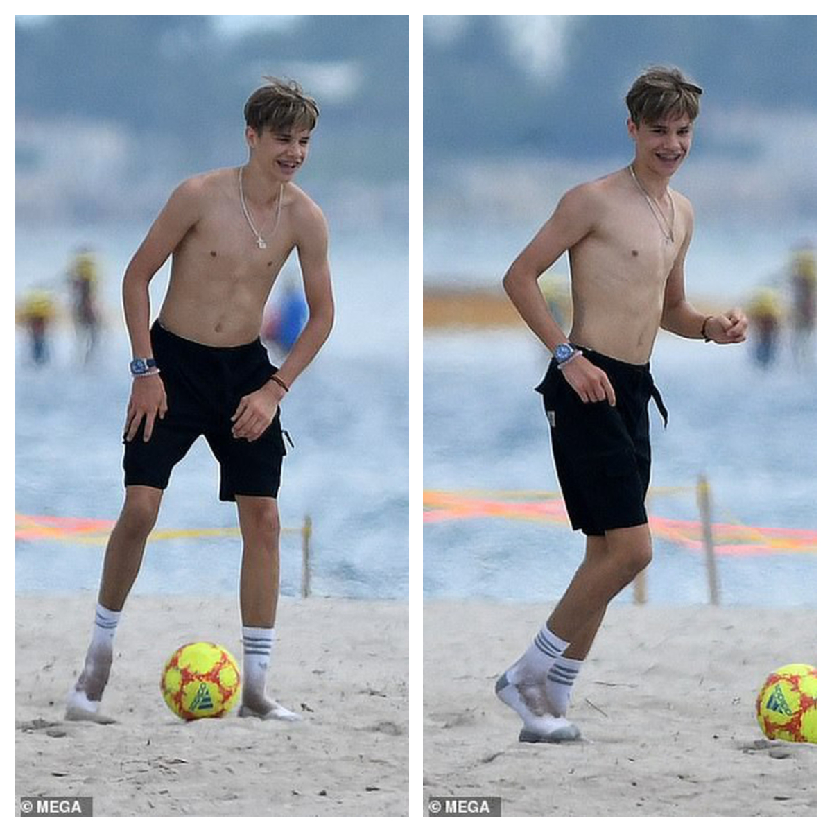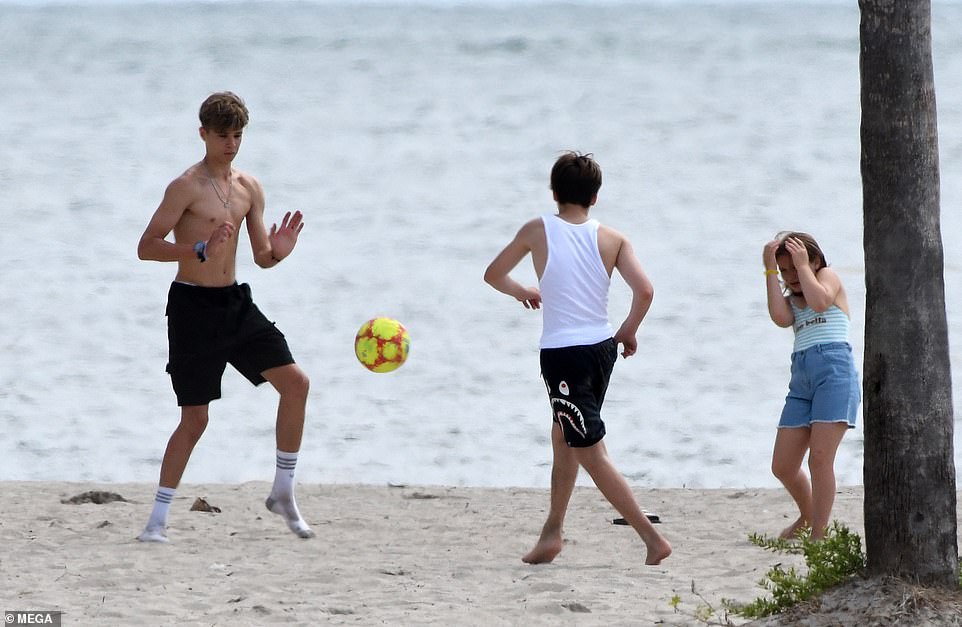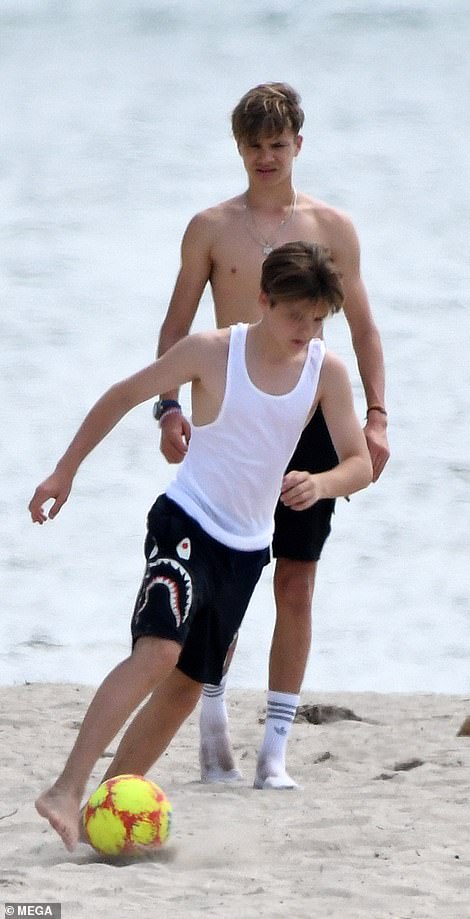 Ngoài sự bụ bẫm dễ thương và đáng yêu của Harper thì 2 anh em Romeo và Cruz cũng thu hút sự chú ý khi thể hiện kỹ năng chơi đá bóng và đặc biệt là màn lột áo khoe body cơ bắp và săn chắc khi mới 17 tuổi của Remeo.