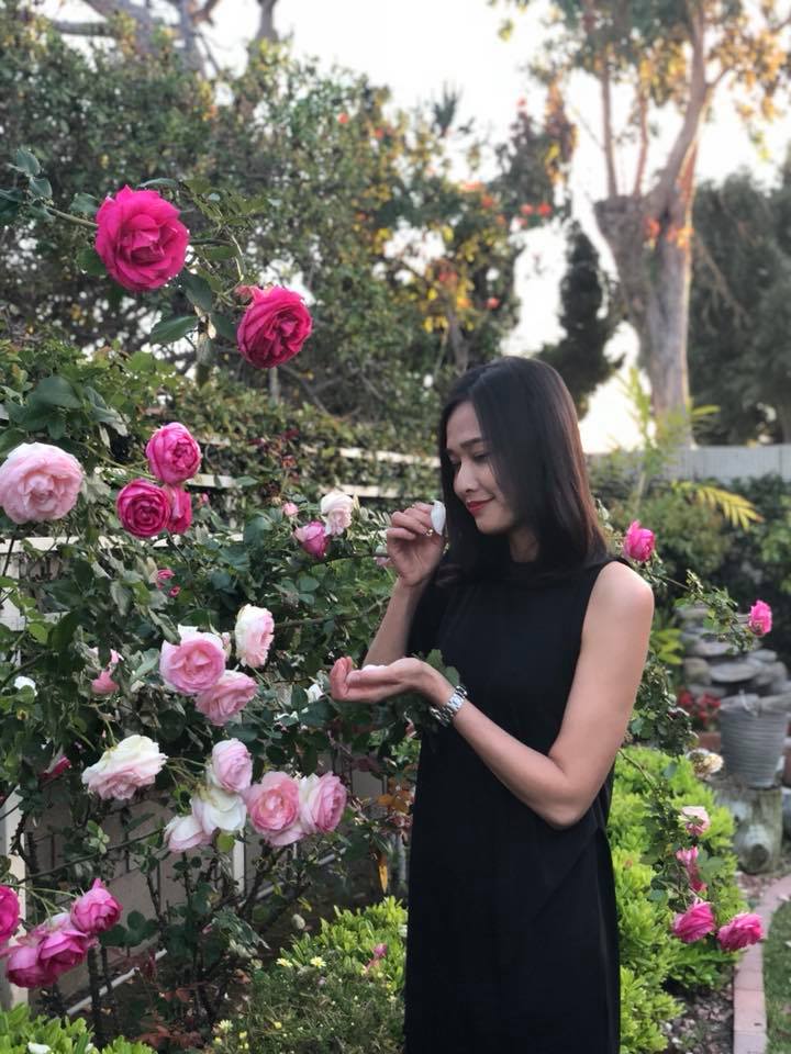 Cô thường xuyên khoe ảnh trên facebook. Trong hình là những cây hoa hồng rực rỡ được chính bàn tay người đẹp chăm sóc.