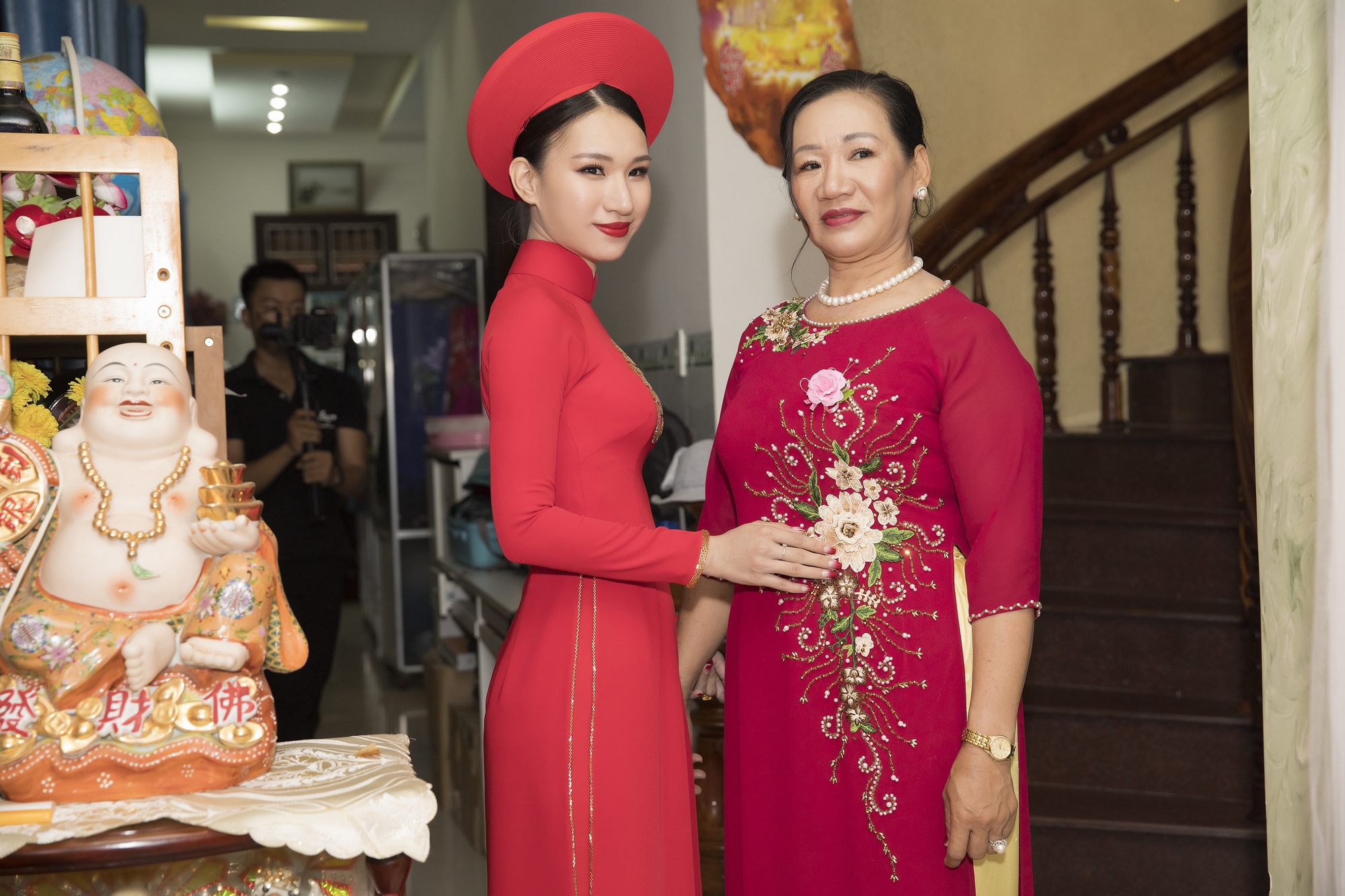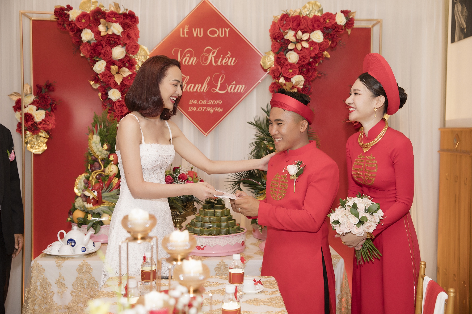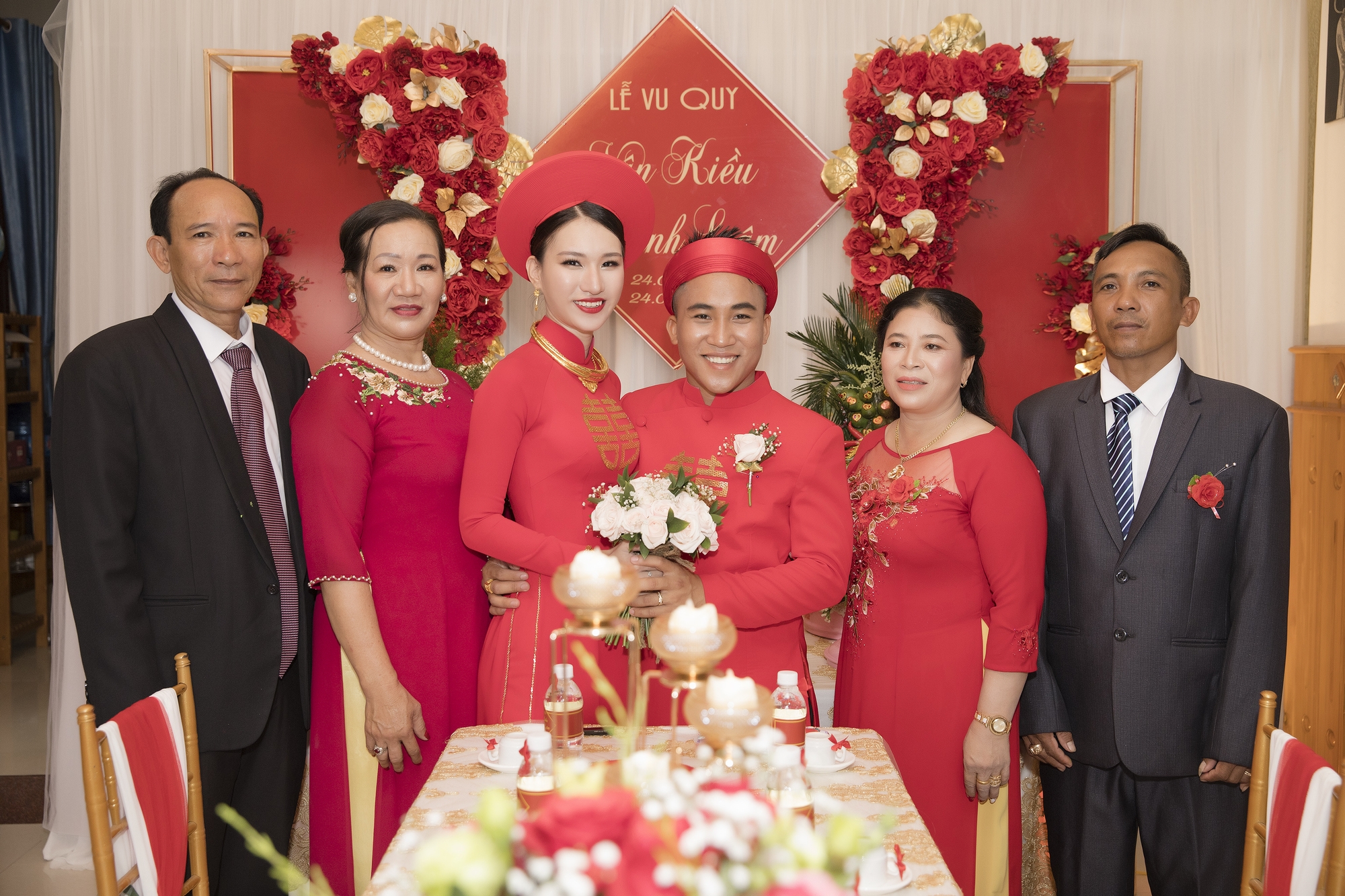 Trong Lễ vu quy diễn ra 24/8 vừa qua, cô dâu Phan Vân Kiều diện áo dài đỏ nổi bật. Trong khoảnh khắc con gái về nhà chồng, mẹ của Ngọc Diễm đã bật khóc vì xúc động