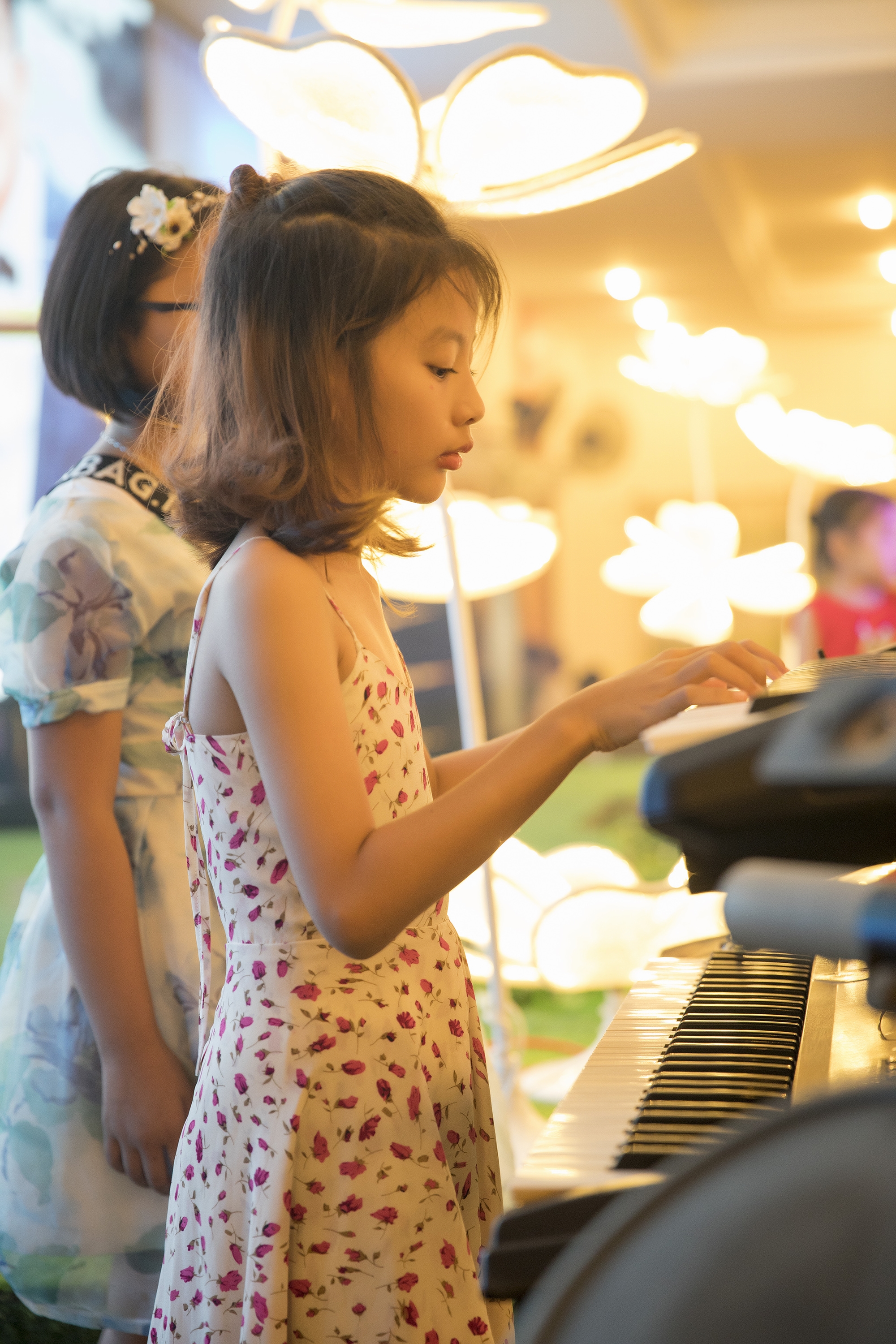 Cô gái nhỏ còn trổ tài đánh đàn cho bạn bè, gia đình cùng nghe