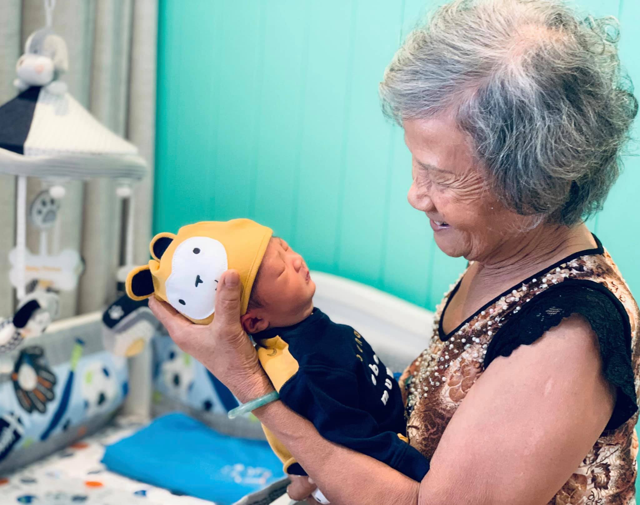 Mới đây nhất Hoàng Bách đã chia sẻ bức hình cậu con trai Hippo của mình đang ngủ say trên tay của bà nội cùng chia sẻ: “Nói sao cho đủ những yêu thương này!!”