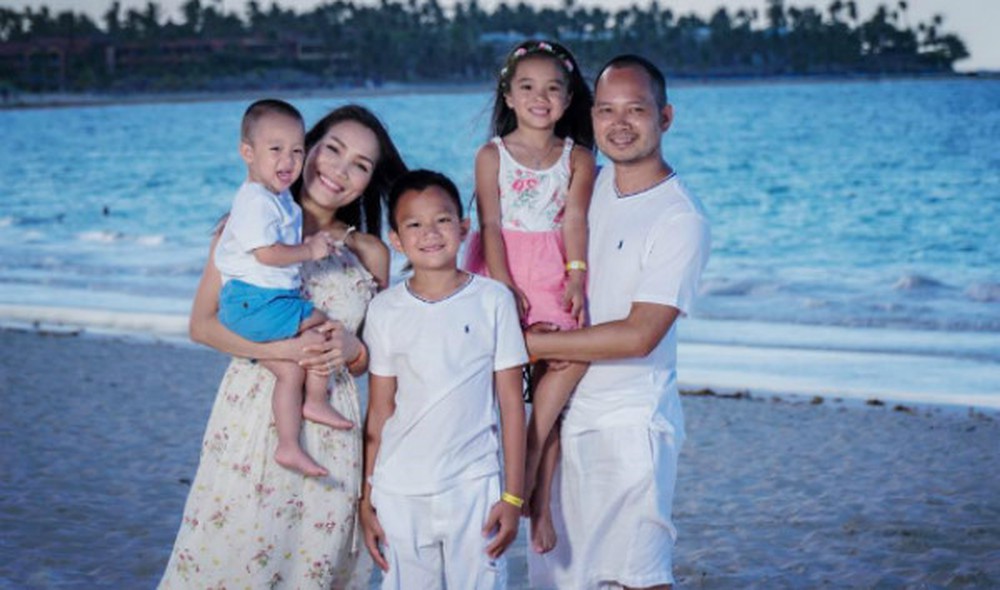 Hình ảnh gia đình 5 người của Hồng Ngọc bên căn biệt thự mới xây được Thomas chia sẻ cùng lời chúc mừng sinh nhật tới bà xã