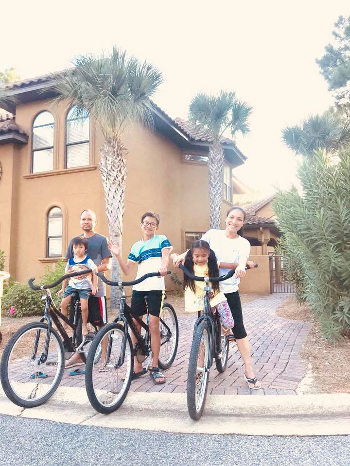 3 con của Hồng Ngọc chụp hình tại ngôi biệt thự rộng lớn với thiết kế theo phong cách châu Âu cổ điển của gia đình cô ở Texax